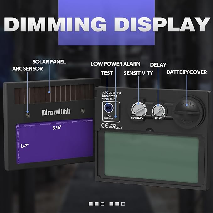 - Auto darkening: 2 Premium Sensors, fast response time. Lithium battery and Solar supply.