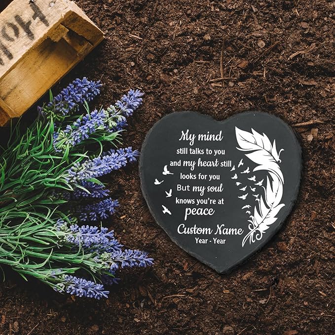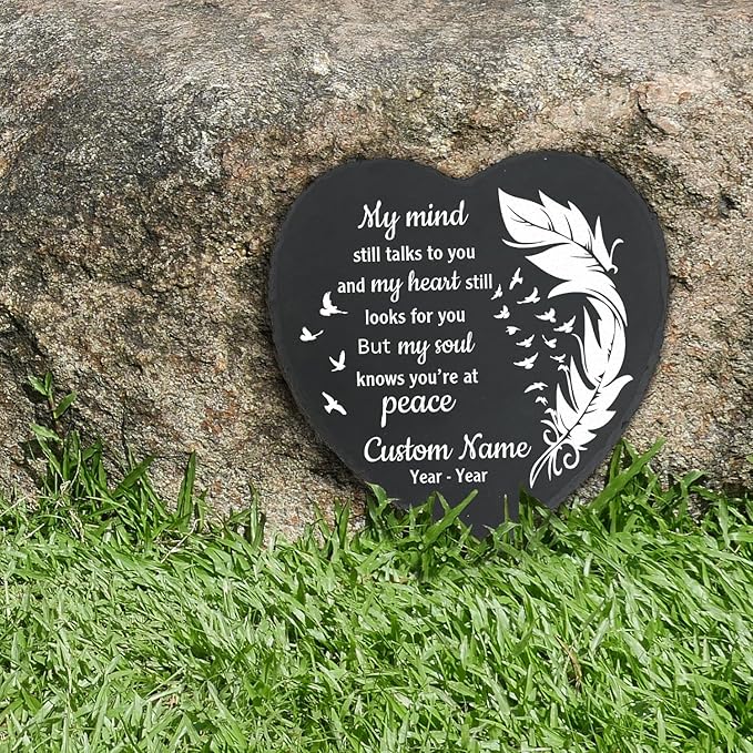 Slate Memorial Garden Stone Personalized, Stepping Stones Memorial Gifts for Loss of Loved One, in Loving Memory, Sympathy Stone, Memorial Plaque, My Mind Still Talks to You TNP42 (2, Heart)