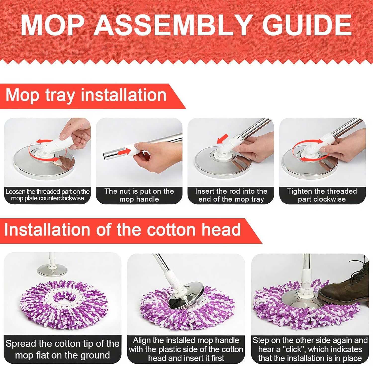 - ✔EASY TO USE: This replacement mop handle comes with a handle twist and release locking system, perfect for your new or used spinning mop. Open the latch before rotating, align the mop with the protruding part and push the handle up and down to clean and rotate the mop easily.