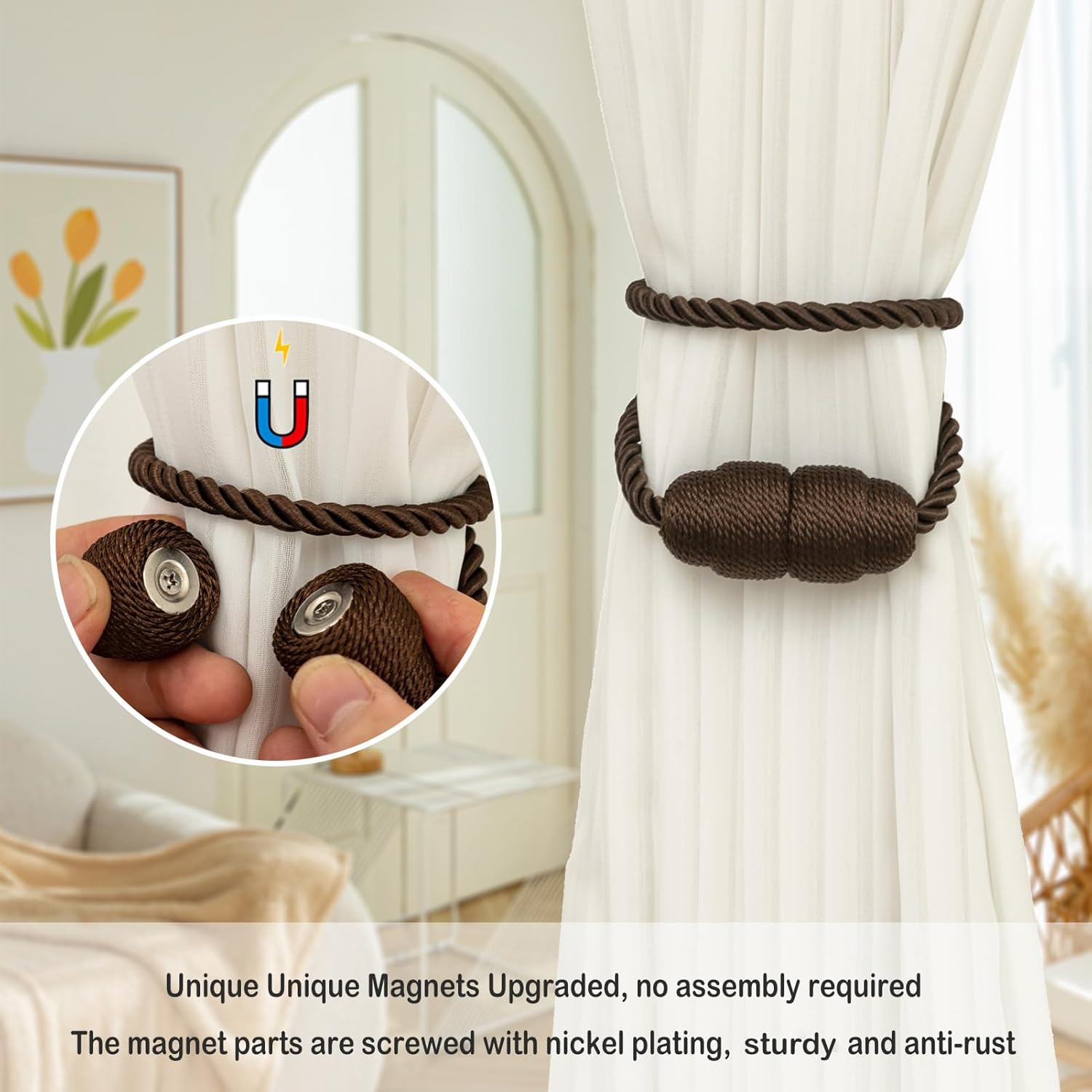 - High-quality materials: Our curtain tiebacks are made of high-strength polyester, Curtain ties made of this material have a comfortable touch. Curtain tiebacks with the latest upgrade magnetic design, Screw fixing does not fall off.