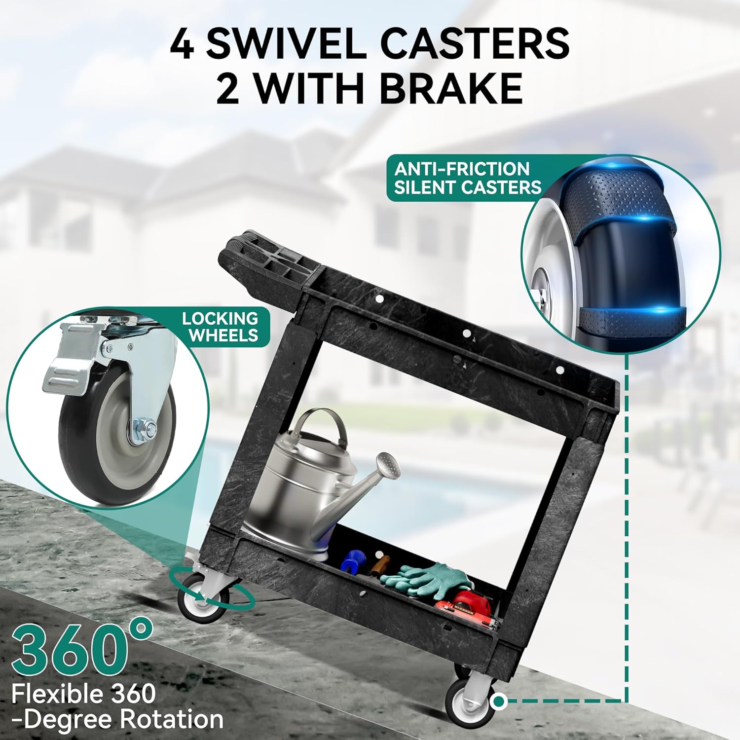 YITAHOME Utility Cart on Wheels, Plastic Tool Cart 550 lbs Capacity Service Cart, 40 x 17 Inch 2 Shelf Extra Heavy Duty Rolling Work Carts for Warehouse, Garage, School & Office, Cleaning, Black