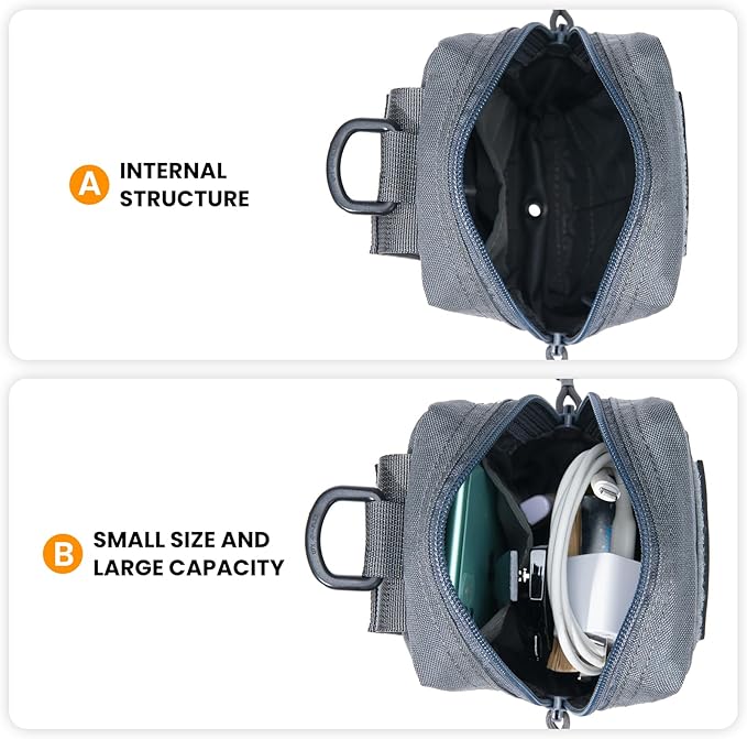 - TYPICAL MOLLE SYSTEM: Tactical molle pouch with Molle back straps can be attached to tactical backpack, tactical vest,battle belt, or other molle gears as an extra exterior pouch,like small EDC pouch, tactical molle bag, ifak pouch, tactical vest pouch, small tactical bag, military pouch, army pouch, gadget pouch, cellphone waist bag ,utility belt pouch.