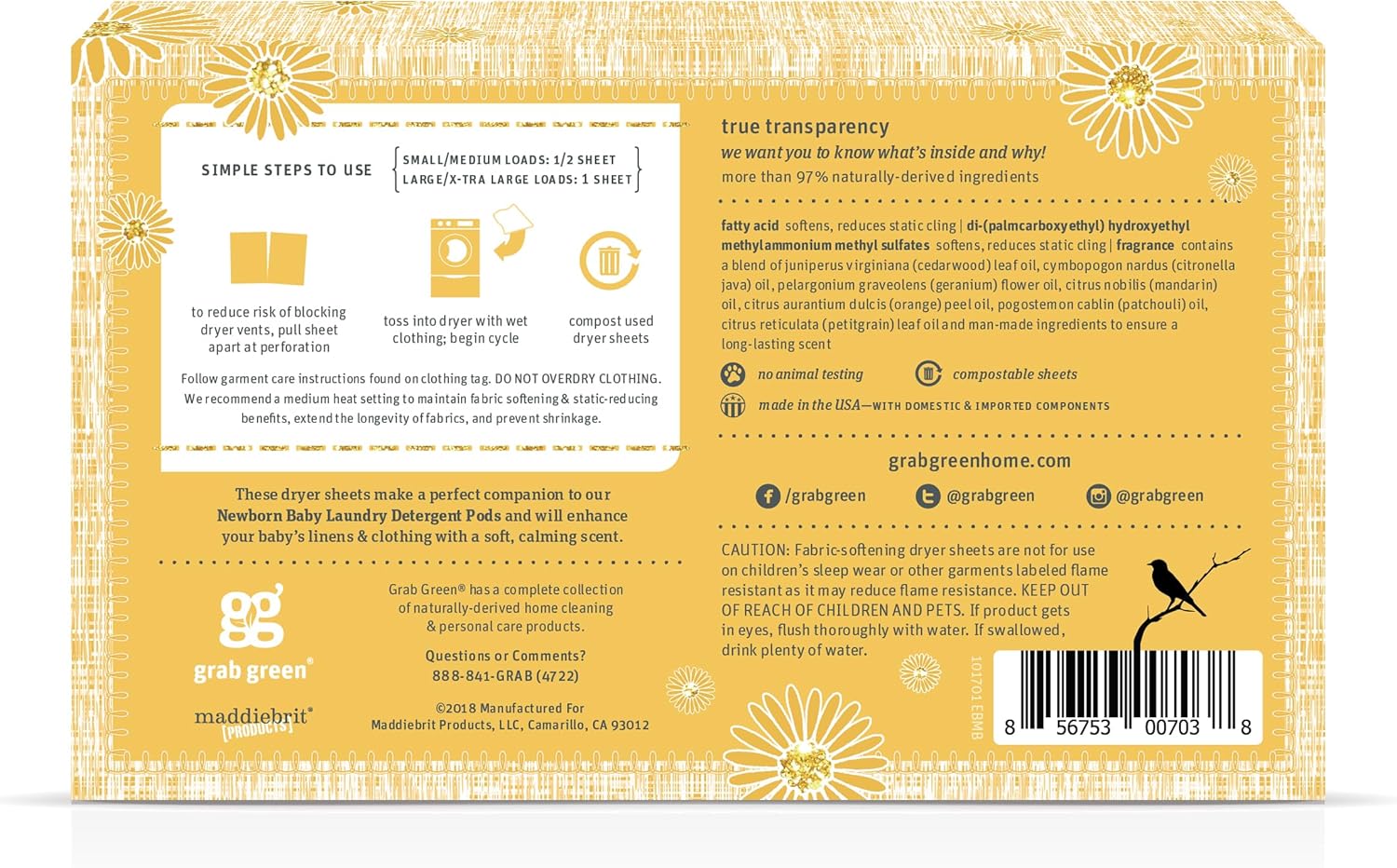 - BEST DRYER AND FABRIC SOFTENER SHEETS FOR PARENTS - Grab Green Newborn Baby Dryer Sheets are essential laundry supplies that leave your clothes fresh, soft, and free of wrinkles or static