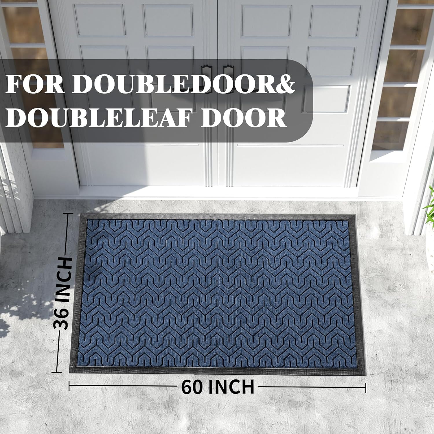 Yimobra Extra Large Door Mat Outside Entrance 60x32, Waterproof Heavy Duty Outdoor Mats for Front Door, Non Slip Rubber Entry Mat for Garage Patio, Easy Clean, Blue