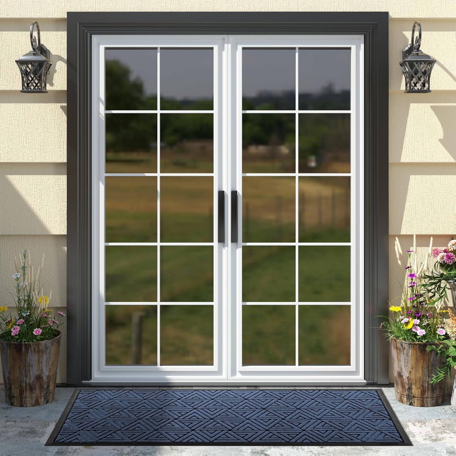 Yimobra Large Door Mat 47x24, All-Weather Waterproof Non-Slip Welcome Matt Outdoor, Heavy Duty Non Slip Doormat for Entryway for Patio and Garage Indoor, Easy Clean, Blue