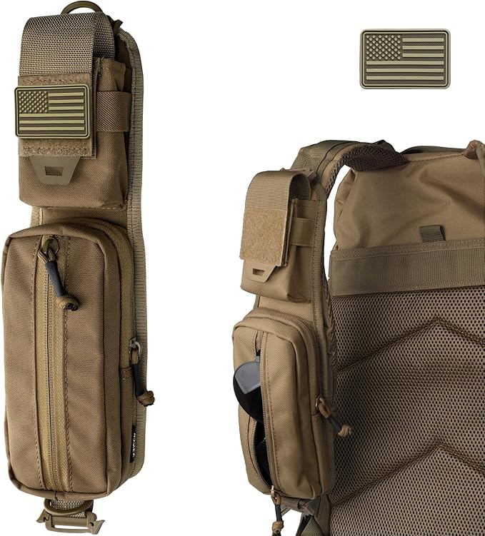 - TOUGH QUALITY: Shoulder strap pouch is made of 500D Oxford Nylon, durable and water-resistant, offering long-term durability and keeping your gears stay safe and dry. Size: 13"H x 3.2"Wx 1.5"T (33cm*8cm*4cm). Please refer to the picture for the pocket size. US PVC Patch Size: 3cm*5cm / 2"L x 1.2"H.