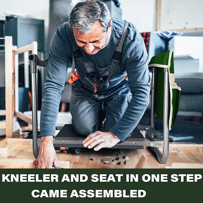- KNEELER AND SEAT IN ONE STEP & CAME ASSEMBLED! Get a whopping 14X10 IN wide of seat vs. the standard 10X5 IN with our unique Upgraded widened Thick Kneeling Pad! This kneeler is super easy to store thanks to a quick folding mechanism.No messing around just fold and go.This kneeler is complete with a snap-lock that ensures it stays shut when it's flipped and used as a garden stool. So whether you are kneeling on the ground to prune weeding and planting.Aimerla Kneeler will hit your sweet spot!