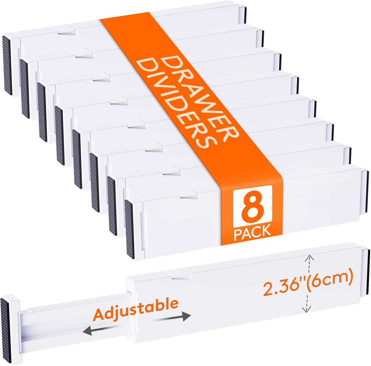 Lifewit 8 Pack Kitchen Drawer Dividers 2.36" High, 11"-17" Adjustable Drawer Organizer for Utensils/Clothes/Makeup, Plastic Expandable Separators in Dresser/Bedroom/Bathroom/Office Storage