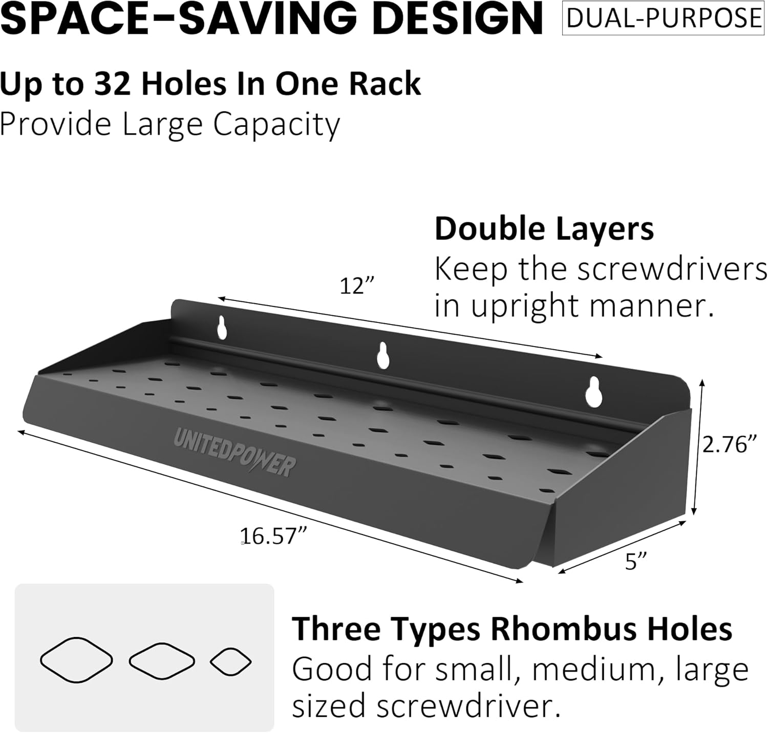 - Durable Material: The Screwdriver Storage Organizer Made of heavy metal with powder coated finish for lasting durability, double-layer design to better fixing tools