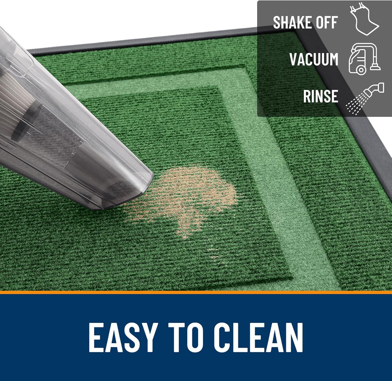 - [EASY TO CLEAN] The OLANLY front door mat is designed for quick and effective cleaning using a vacuum or traditional broom cleaning methods. Additionally, tapping and shaking the back of the doormat helps remove residual debris. For a deeper clean, rinse it with a garden hose and hang the mat in a ventilated place or dry it in a dryer. This versatile cleaning method ensures that your doormat stays clean and tidy, ready to welcome guests.