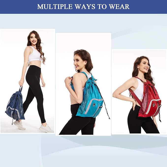 - Breathable & Machine Washable: These draw string back bags are designed with mesh on both sides, which makes the workout bag more breathable. Our swim bags for swimmers can be easily cleaned by the washer, once the beach backpack gets stained, just throw them into the washer, save your time and it dries quickly, it's perfect as travel accessories.