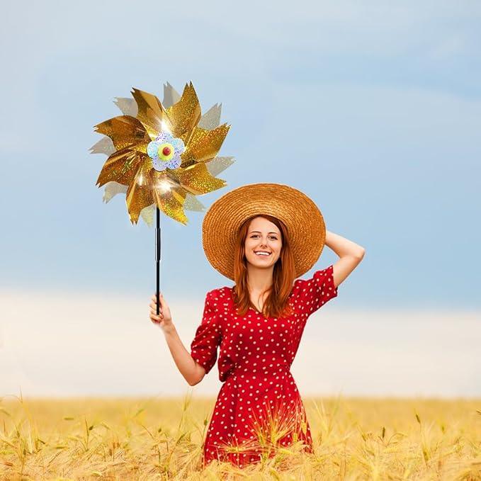- Package: 6 Pieces sparkly reflective pinwheels, the height of each installed sparkly pin wheel is 19.7in. The diameter of the pinwheel is 9.5in