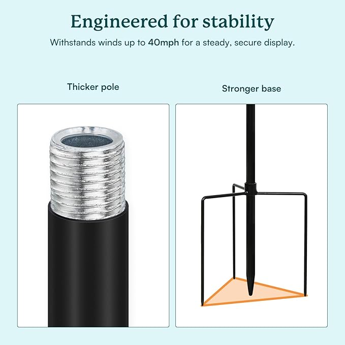 - Sturdy Stability: Thickened pole diameter and a four-foot base design provide reliable grounding
