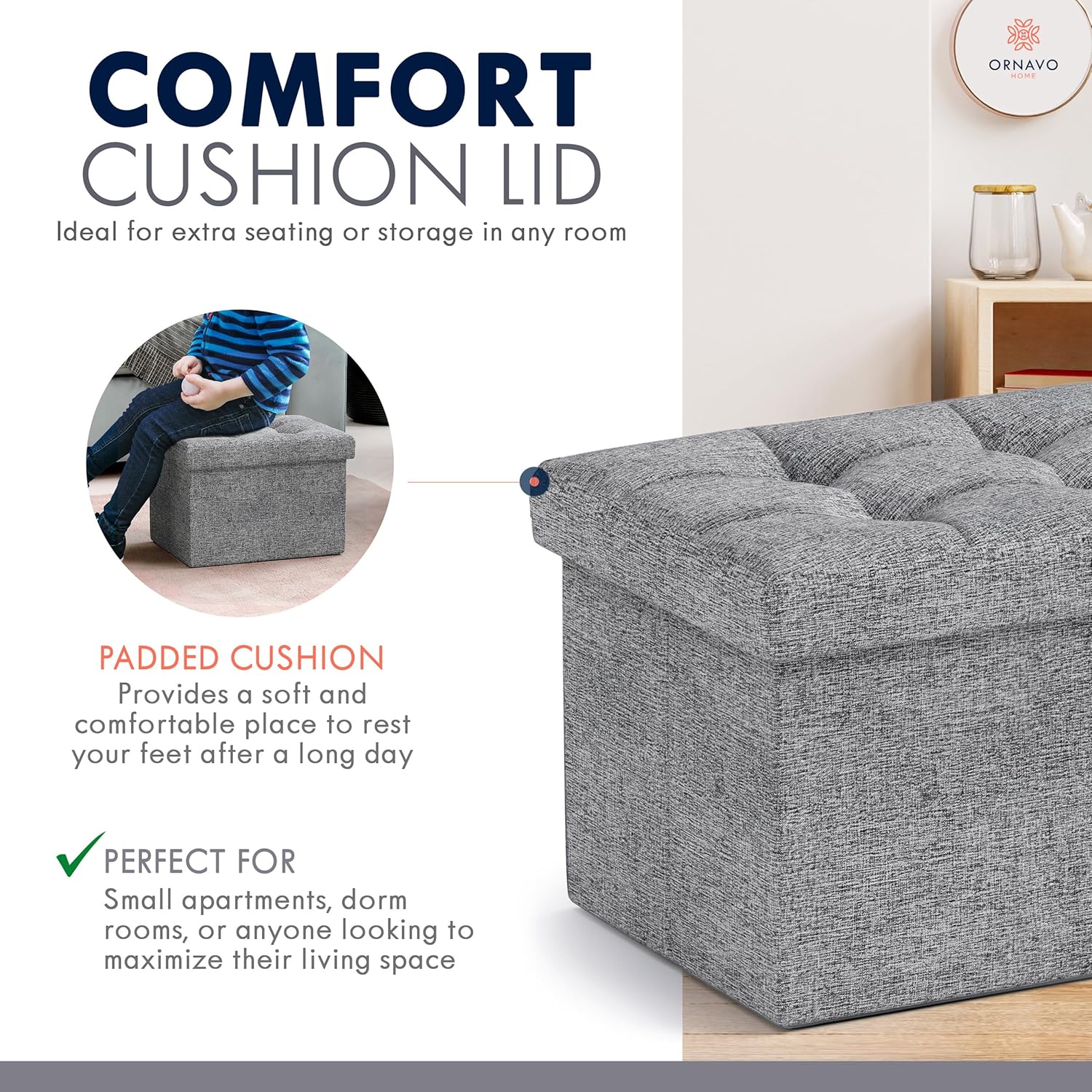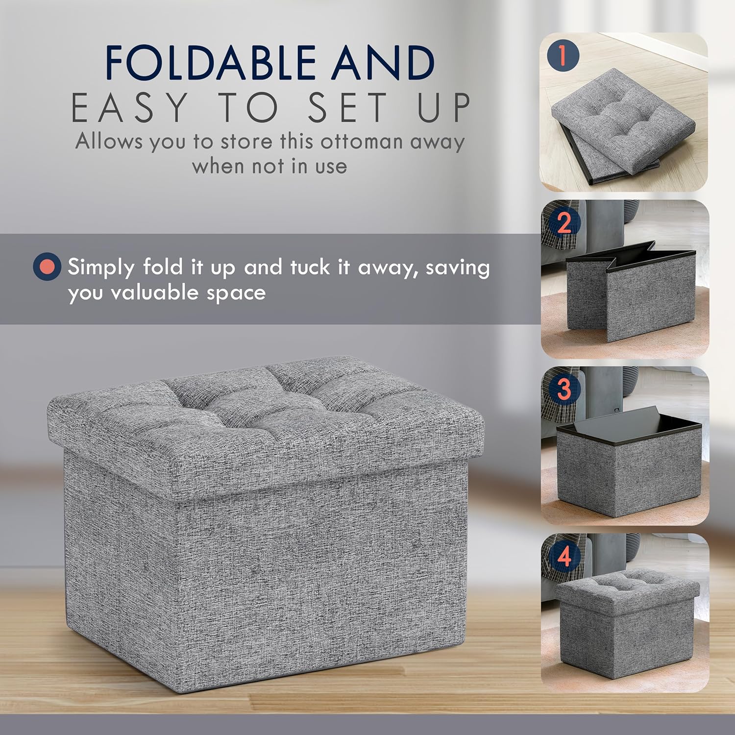Ornavo Home Small Storage Ottoman, Set of 2, Foldable Collapsible Rectangle Linen Ottoman Foot Rest Stool Seat, for Living Room, Bedroom, Home Office, Dorm - 12 x 16 x 12, Gray