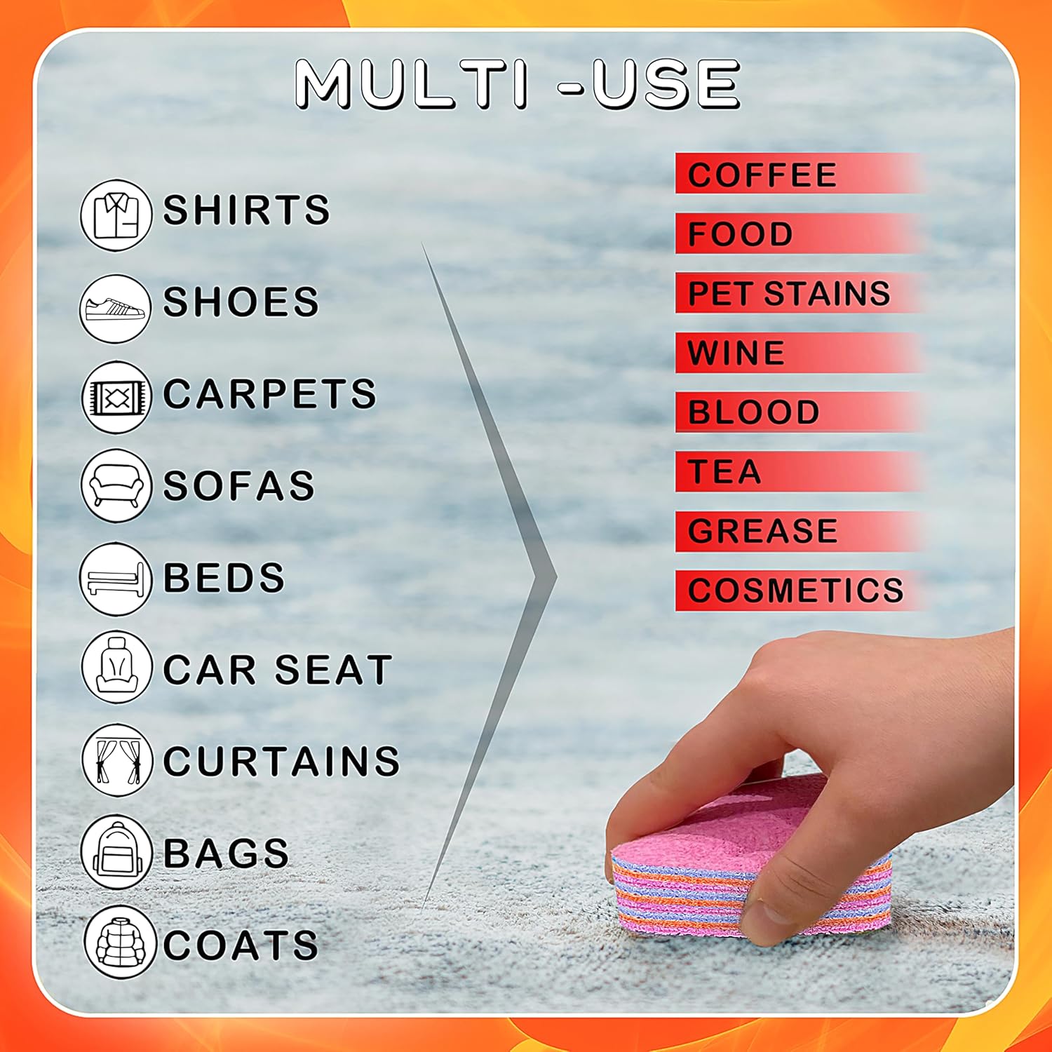 - Safe for Home & Family: Designed with kids and pets in mind, POYCHI's laundry stain remover is ideal for home use. It’s effective as a couch spot cleaner for fabric, paint remover for clothes, dry cleaning for clothes, stain stick, and even a color catchers for laundry. Perfect for all fabrics