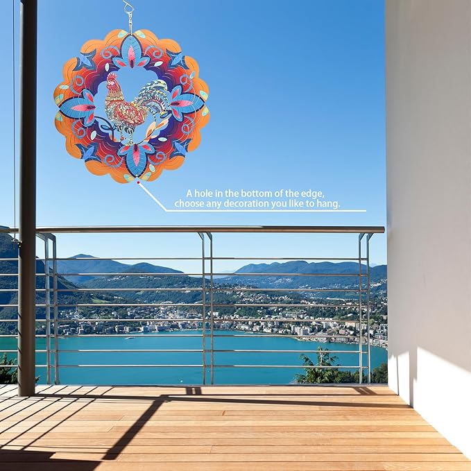 - 【Wind Spinner Brings Much Joy】The rooster style inspires the decorative hanging wind spinner, which adopts PUV Print Technology with a frosted paint finish. When the light catches it, it shines so beautifully, rotation when the wind blows, added beauty to your yard, A very relaxing sight to see, takes away your fatigue and brings different fun to your life. It's a great gift idea and a must have for those with space outdoor