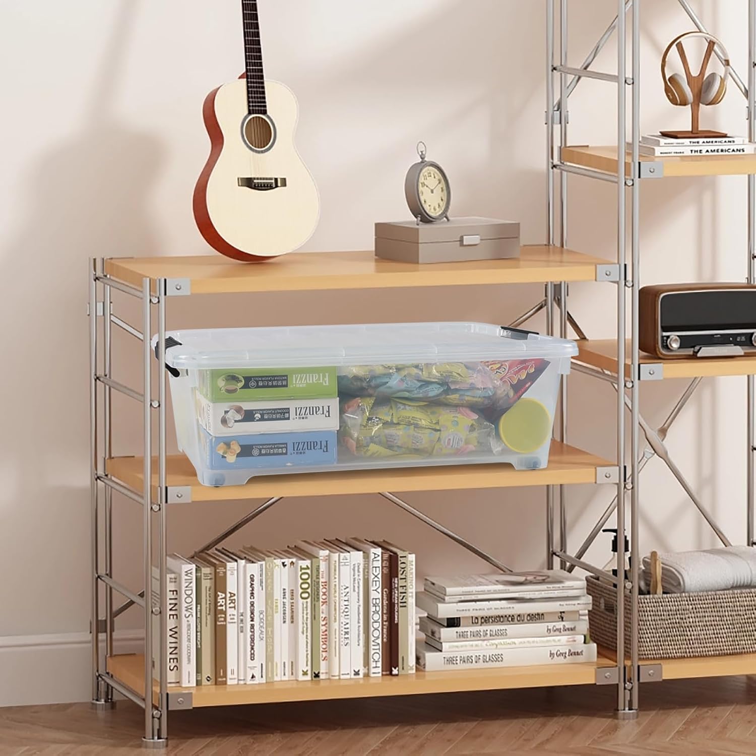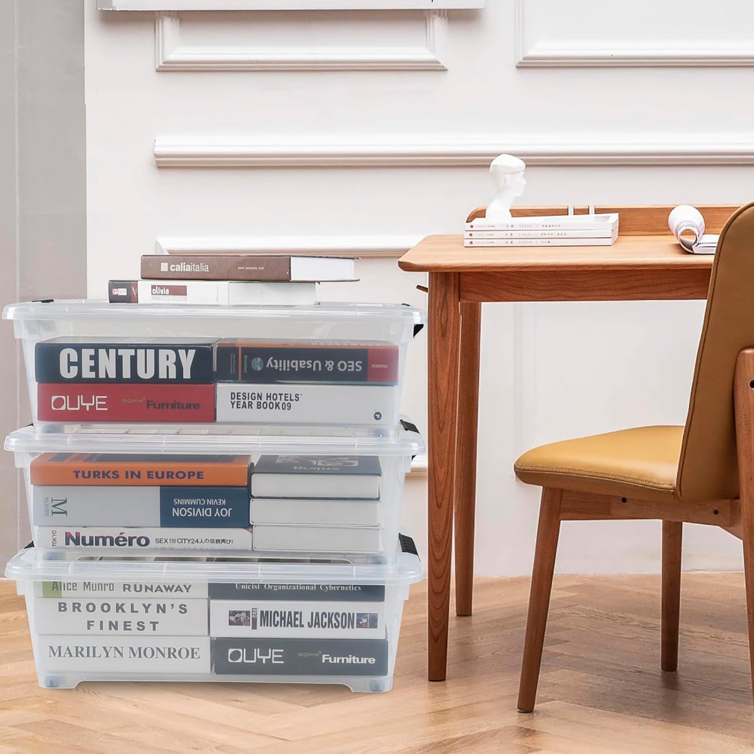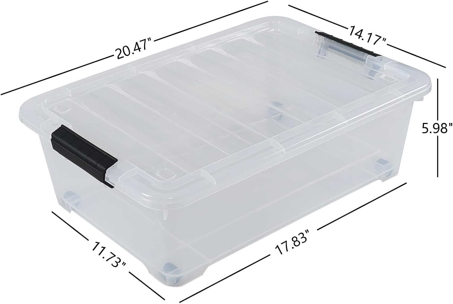 - 20 liter latch storage box features a flatted shape for saving space, suitable for placing under the bed, sofa or in the garret, car trunk and other limited area