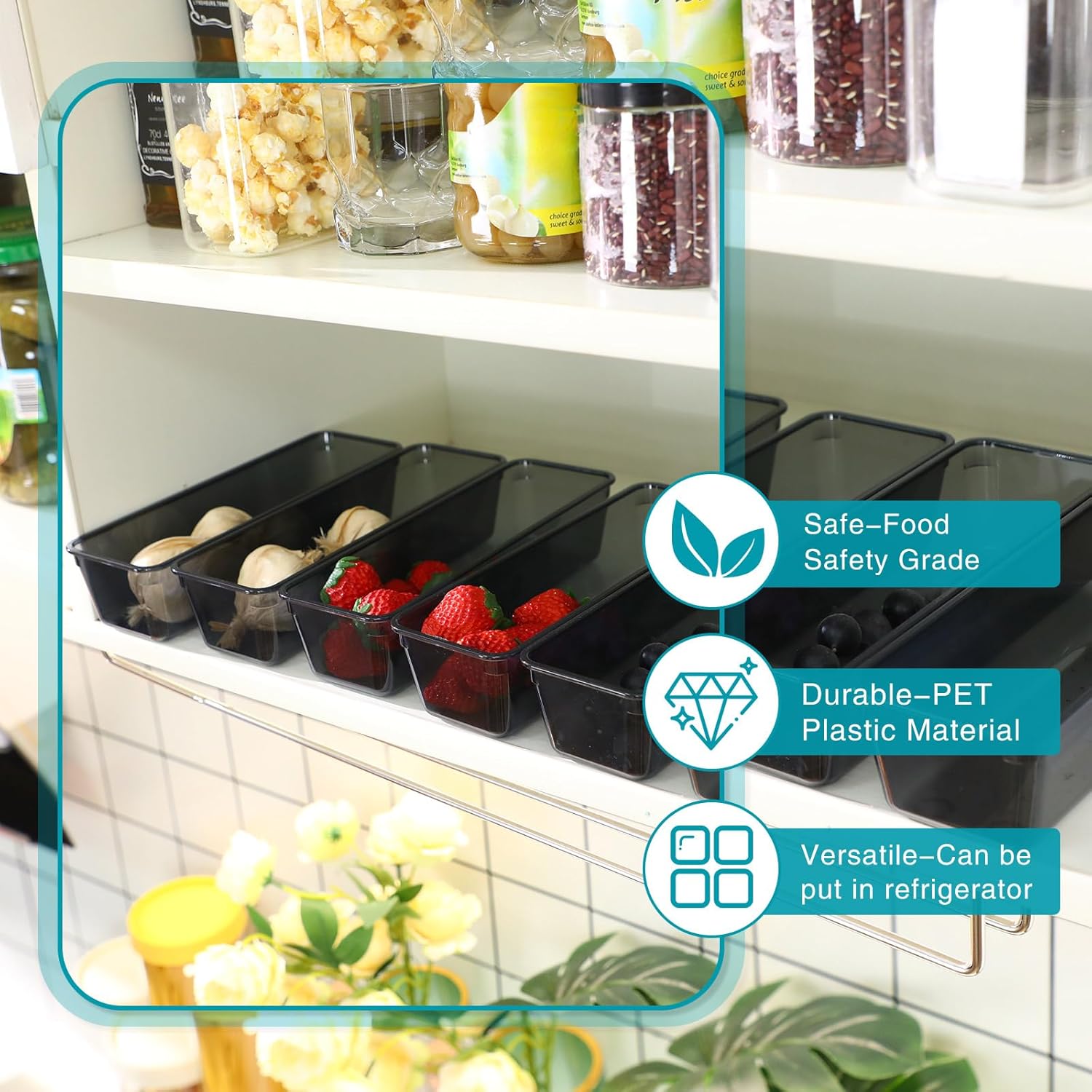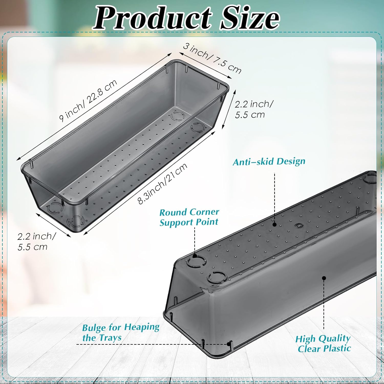 - Sturdy and Serviceable: our kitchen drawer organizer is made of quality PET plastic, which is sturdy and serviceable, not easy to break or deform; The raised dot design at the bottom can help to fix it in the shelves or drawers to avoid slipping