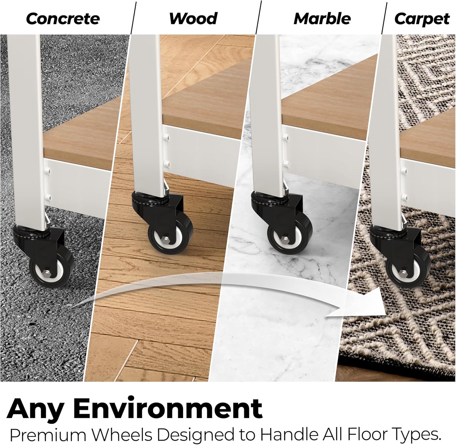 HOMEDANT House White 5-Tier Metal Rolling Cart Shelf Rack Casters Heavy Duty Wheel Shelving Unit Adjustable Utility Storage Shelves Organizer Shelf Kitchen Garage 24.4" W x 16.5" D x 62.2" H 1Pack