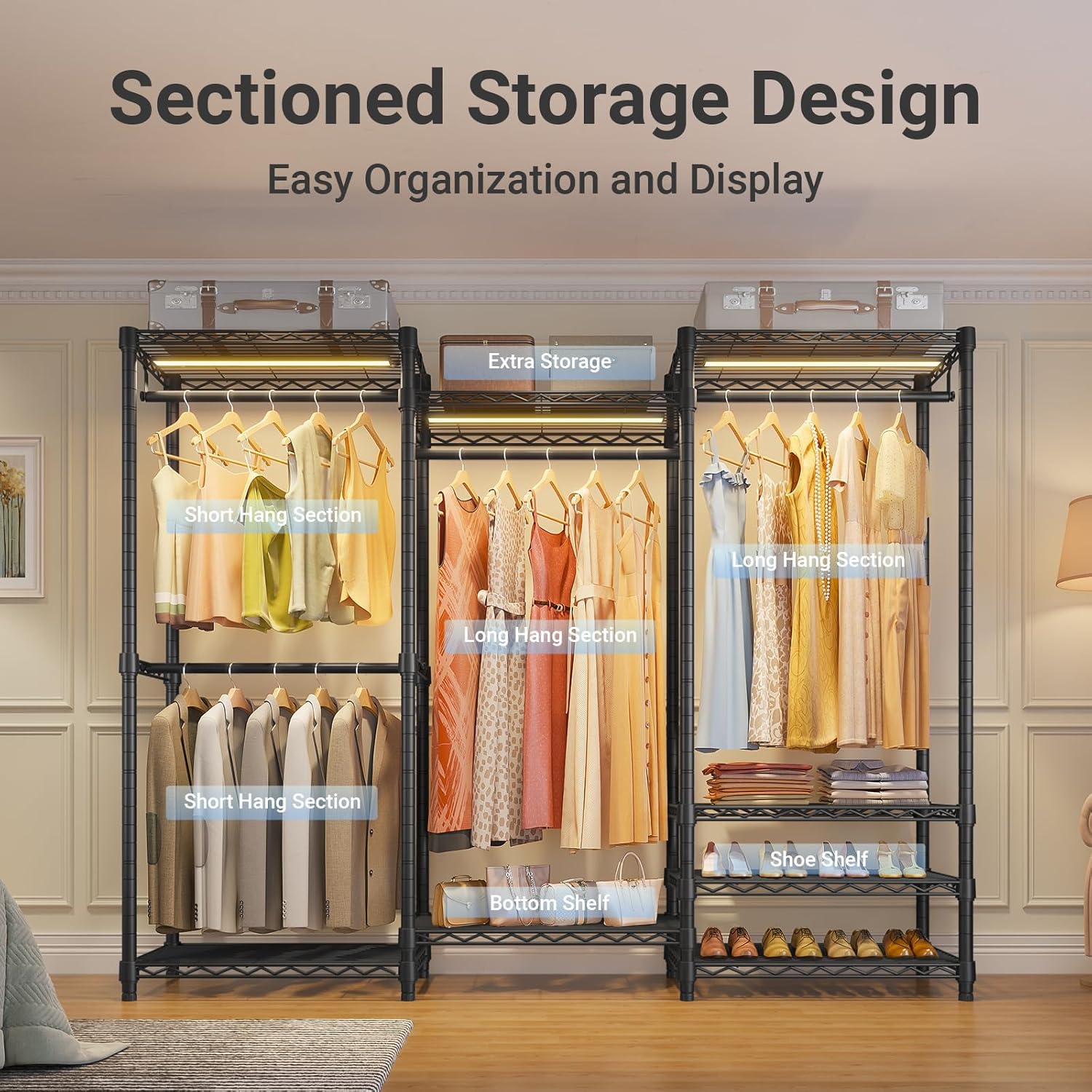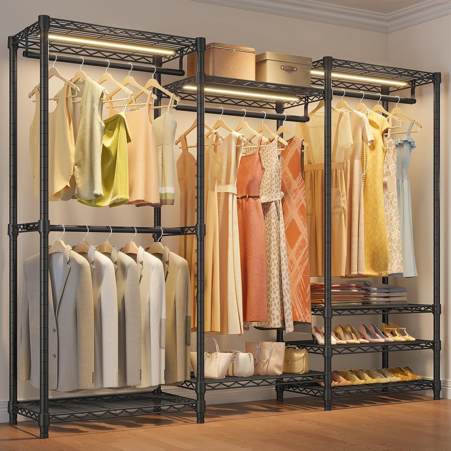 VIPEK V5L Garment Rack Heavy Duty Clothes Racks with Dimmable LED Light, 3000K Warm White, Portable Closet Wardrobe Freestanding Metal Clothing Racks for Hanging Clothes, Max Load 890lbs, Black