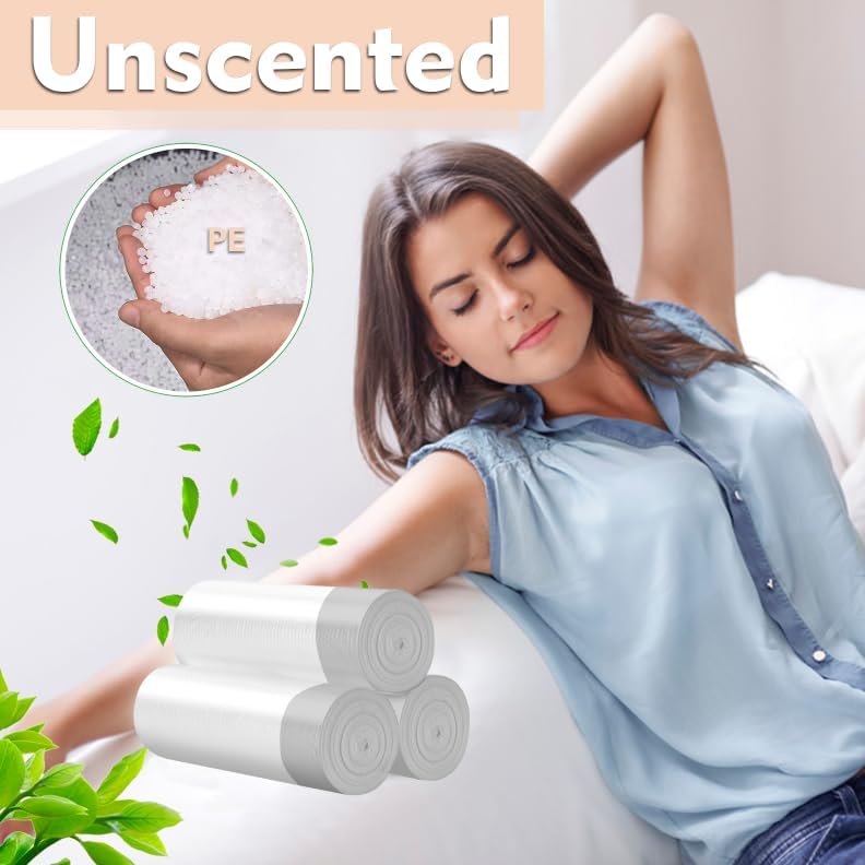 - 【Strong PE Material】Inwaysin 7-8 gallon trash can liners are made from the latest upgraded PE material, unscented and harmless to your health or the enviroment. And the high density PE material is to lock the odor of the mess. Our semi-transparent white trash bags 8 gallon are great for hasslefree recycle process. These medium trash bags are strong enough to manage the waste in your house.
