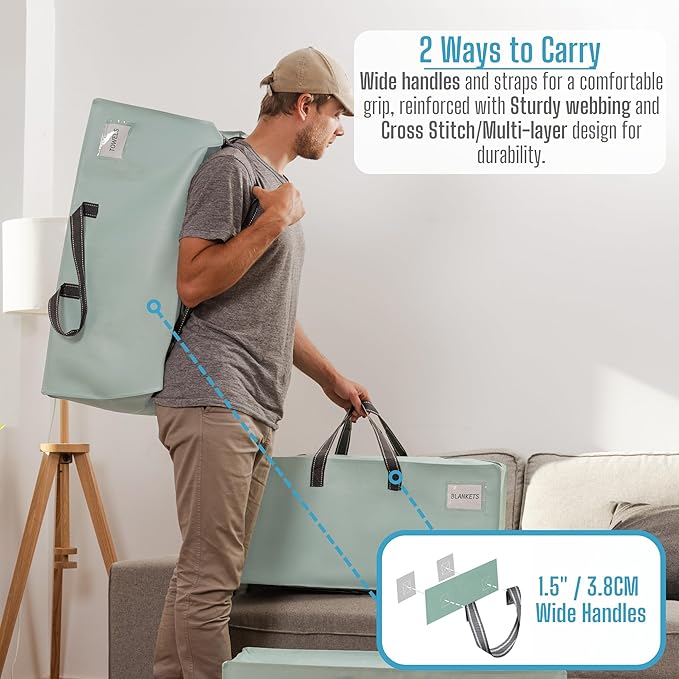 - Clear Tag Pocket & Wide Opening β Say goodbye to the frustration of searching for your belongings. Make a custom label and insert it into the clear tag pocket for easy identification of items like blankets, bedding, pillows, and clothes. Remember to use this labeling feature for organizing college dorm room essentials, moving to a new home, or storing items in the garage. The bag is equipped with dual extended zippers, creating a wide opening that allows for effortless access to stored items.