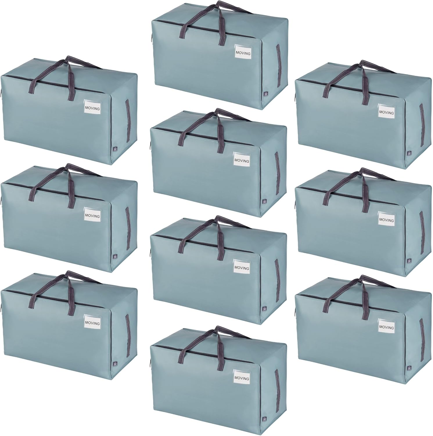 VENO 10 Pack Moving and Storage Bags, Heavy Duty, Alternative to Moving Boxes, Large Packing Totes Supplies for College Dorm Room with Zipper for Clothes, Wide Open Design (Light Blue Matte, 10 Pack)