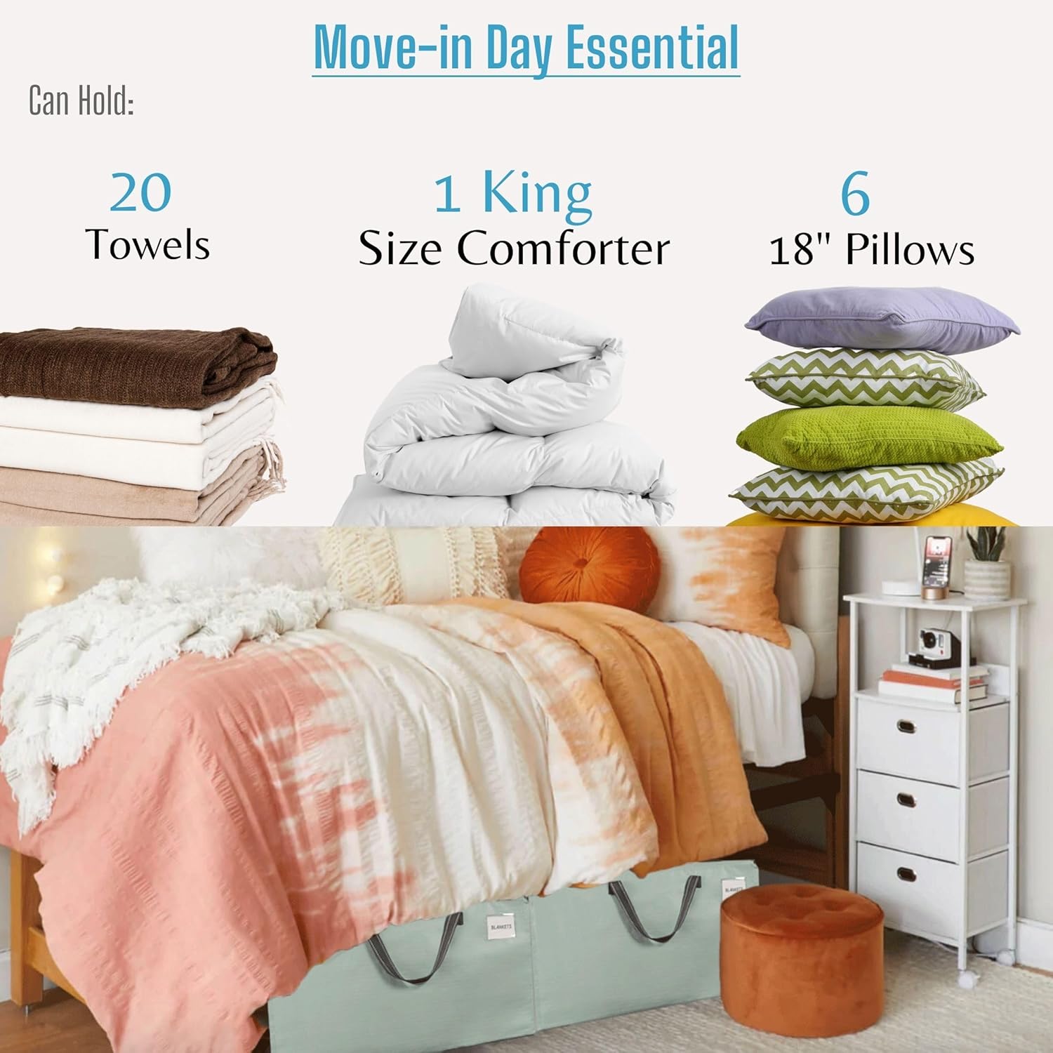- Perfect for Moving and Storage β Whether you're moving to a new home or organizing seasonal storage, easily sort and identify your items, including blankets, bedding, comforters, towels, pillows, linens, and stuffed animals. Keep everything organized and accessible with ease!