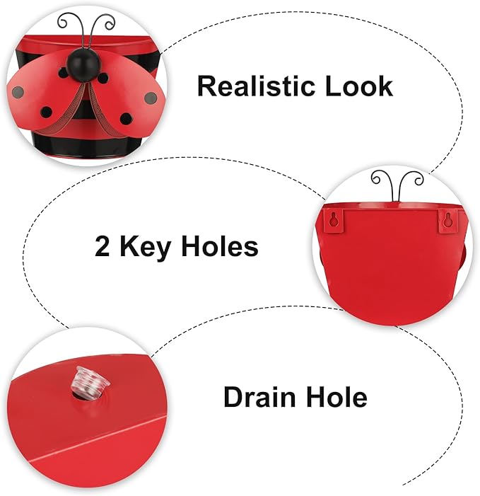 - Ladybug Design: Set of 2 metal half round planters with hand-painted Ladybug in different size. Uniquely crafted adds more vibrant colors to the dull wall even as a wall decor. Wall Planters create a beautiful accent worth a double take.