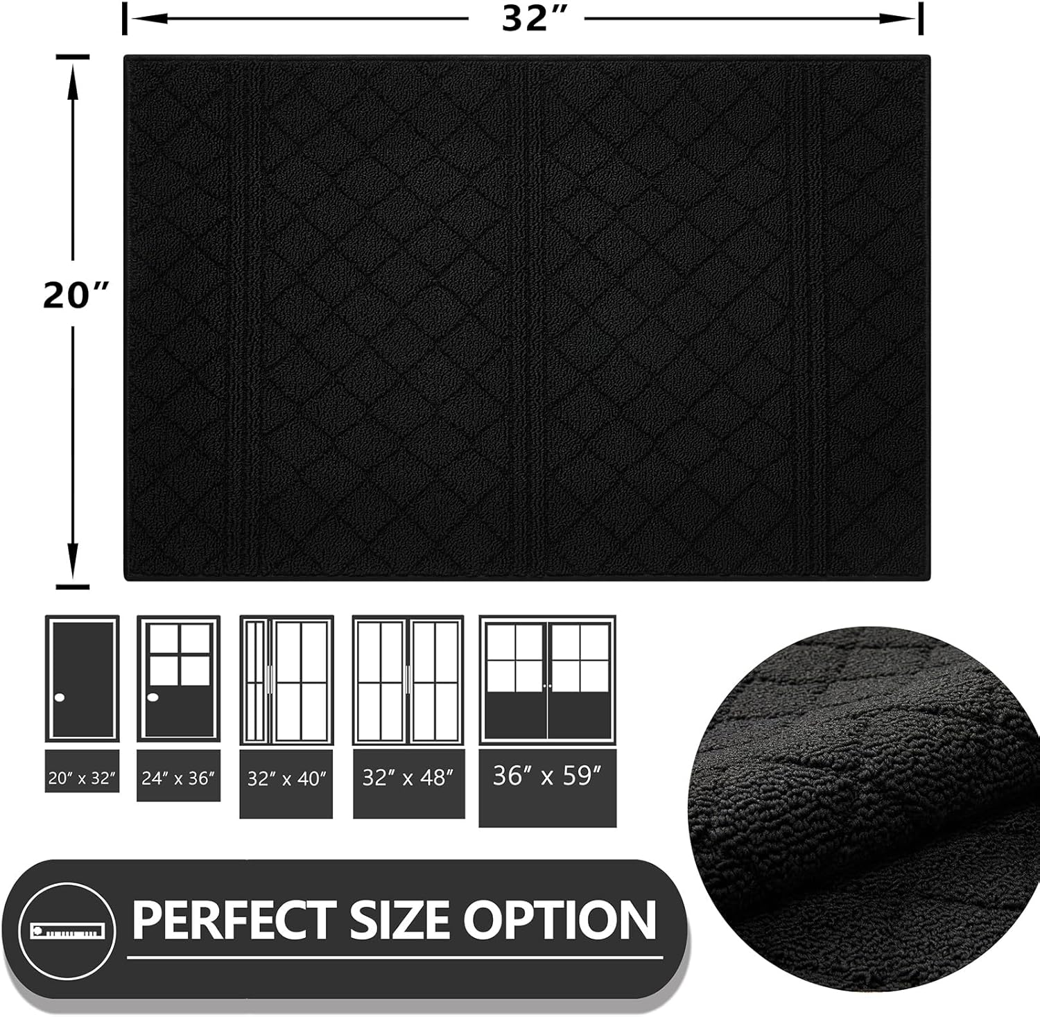 REFETONE Indoor Doormat, Front Back Door Mat 20"x32" Absorbent Rubber Backing Non Slip Door Mats, Low-Profile Resist Dirt Entrance Rugs, Machine Washable Door Rugs Inside Floor Mat for Entryway, Black