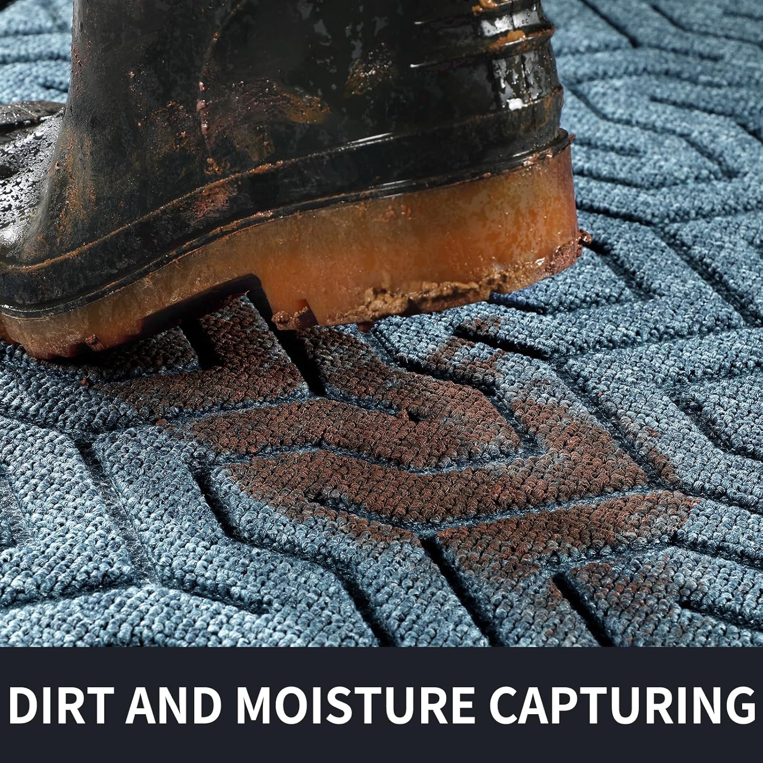 - Superior Dust Trapping & Waterproof: Featured deep Y-pattern grooves, the front door mat effectively scrapes off mud, dust and debris from shoe soles, keeping dirt outside your home. Made of high-quality polypropylene, this mat is waterproof and holds up perfectly even after rain. Its strong structure withstands heavy foot traffic without losing shape or functionality