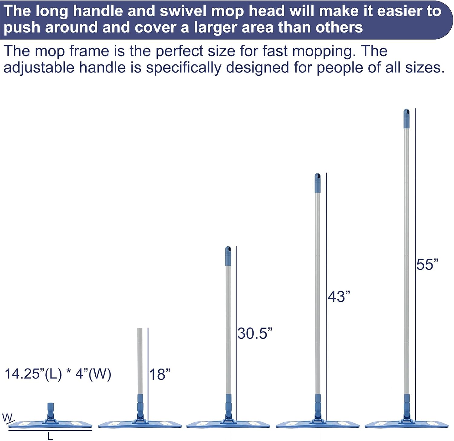 - Lightweight Mop for Easy Cleaning - The AMERWASH PLUS hardwood floor mop boasts a 360Β° swivel mop head, effortlessly cleaning around table legs, stairs, corners, and tight spaces. Its adjustable steel handle extends up to 56 inches, allowing easy access under furniture and couches, reducing strain on your body and preventing back pain and muscle soreness.