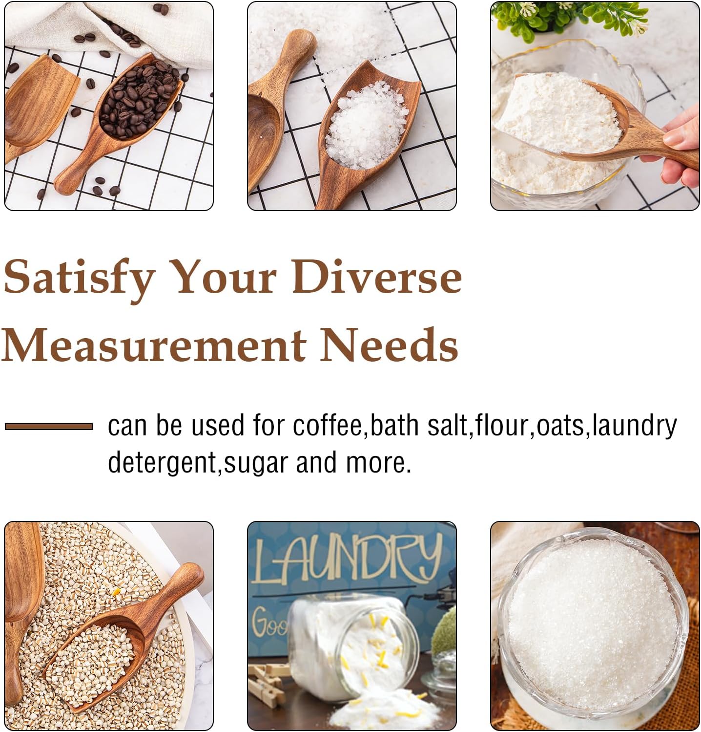 - 【Versatile Wood Scoops】Great scoop for canisters,bath salt,laundry powder,or for dry ingredients such as coffee,sugar,salt,tea,flour,oats and more