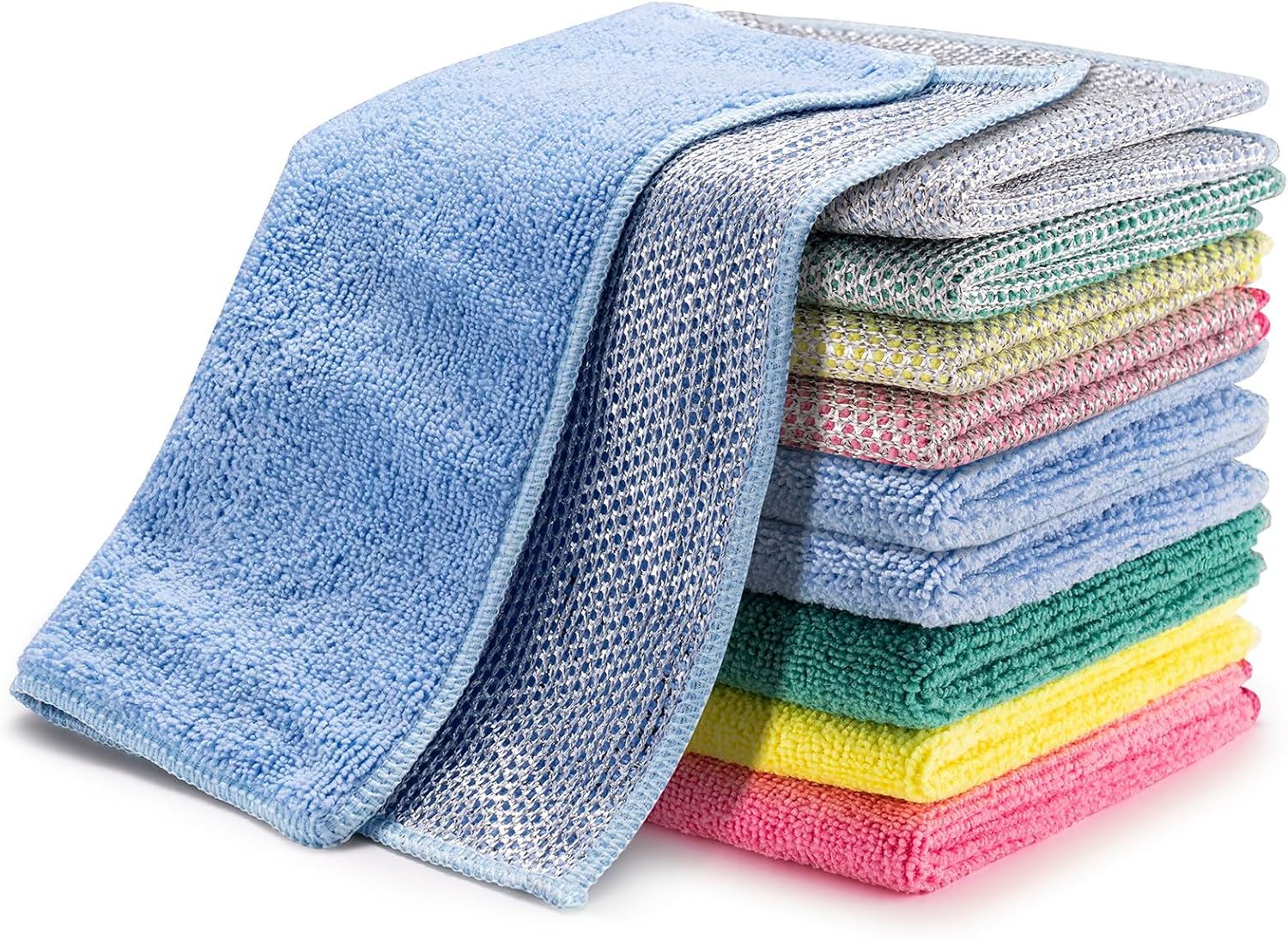 2 in 1 Microfiber Cleaning Cloth Kitchen Towels, Non Scratch Wire Dishcloth Cleaning Rags for Washing Dishes, Multipurpose Microfiber Towels for Cars, Kitchen, Wall and Window Cleaner