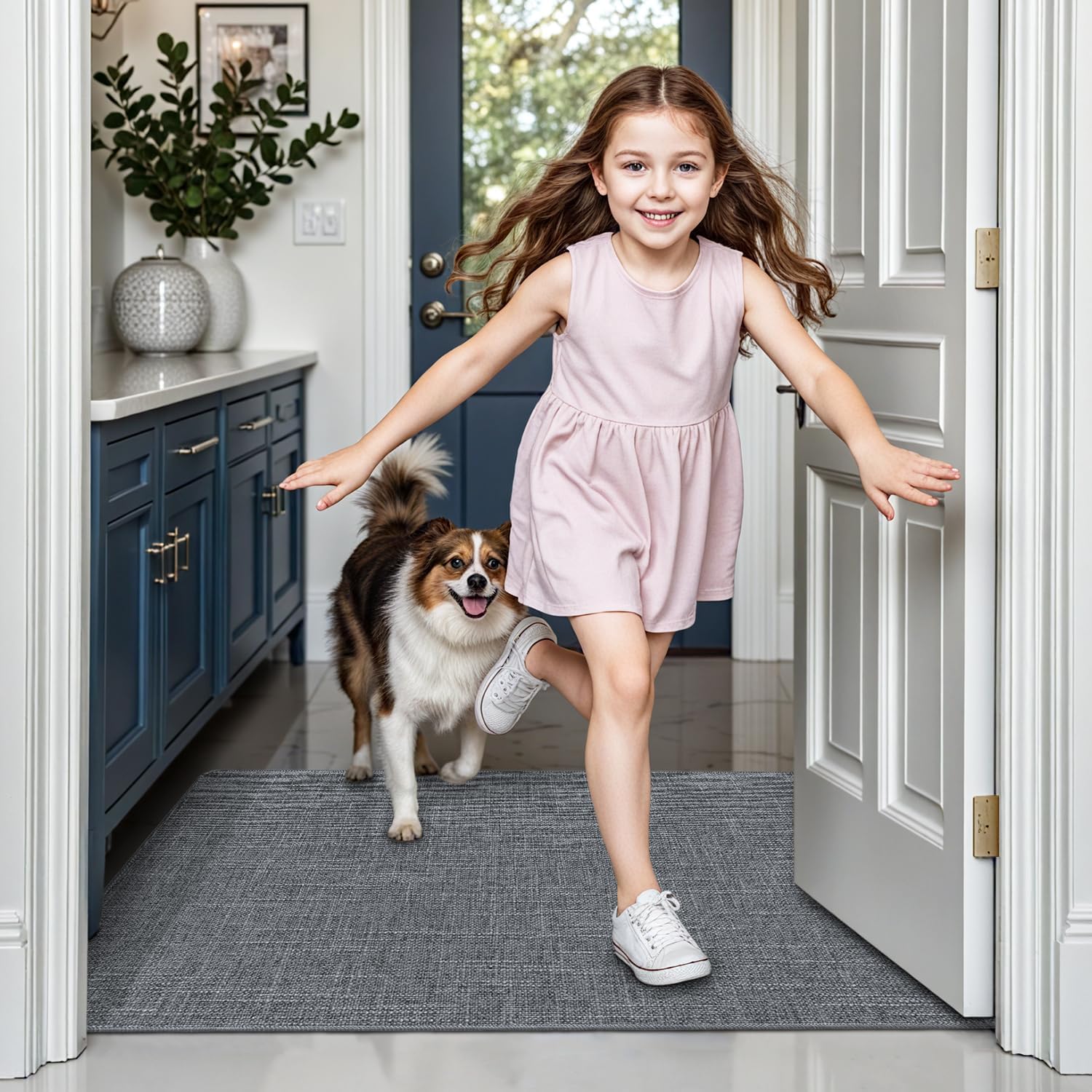 LUMI Ultra Thin Door Mat for Entryway, Low Profile Non Slip Rubber Backing Indoor Doormat, Easy Clean Welcome Entrance Mat for Inside House, Patio, Dark Grey 24"x36"