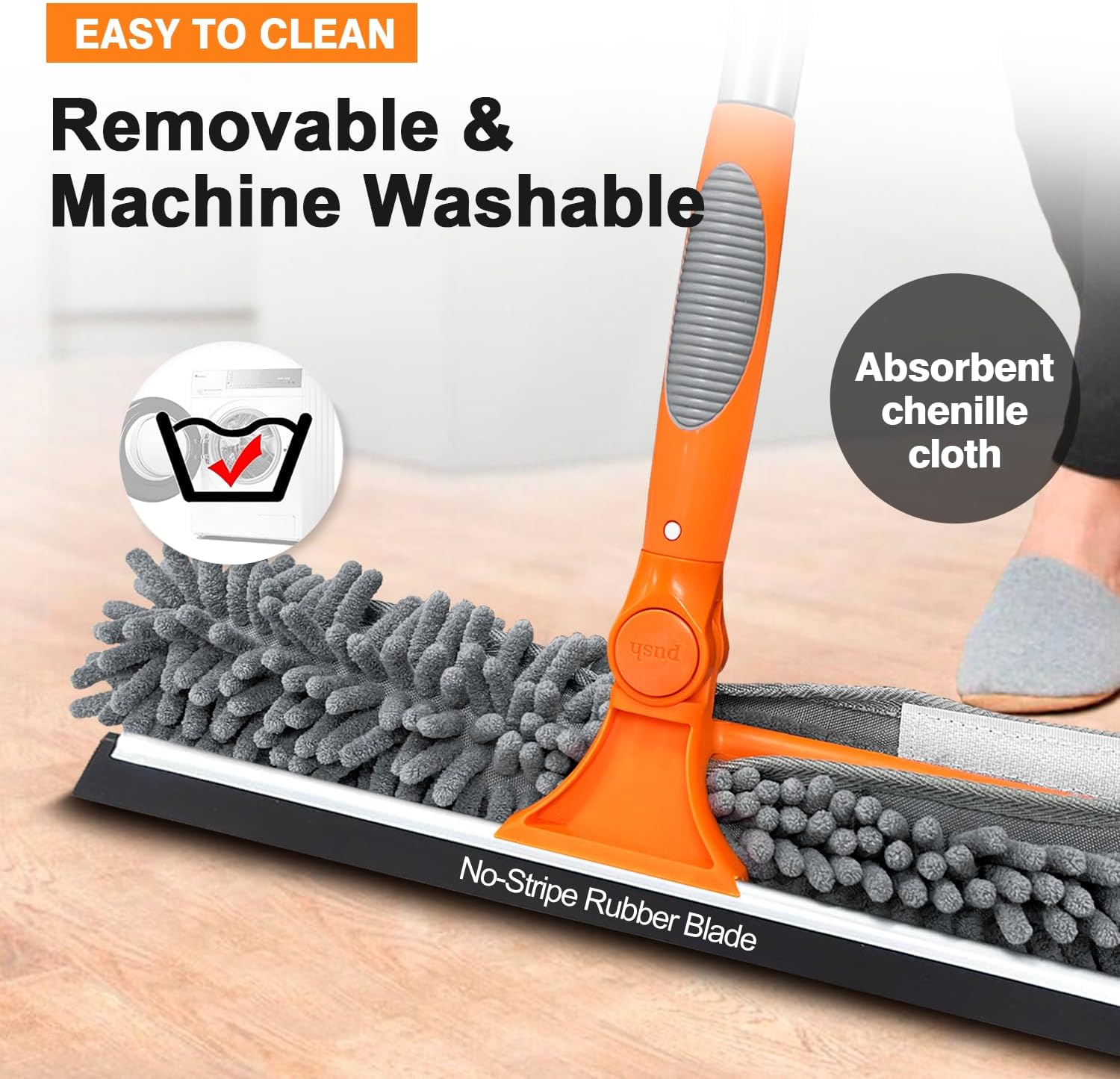 - 【Machine Wash and Detachable Cloths】Chenille fabric is used to remove stubborn stains, are extremely absorbent and can quickly clean window surfaces, and the removable fiber cloths can be machine washed and reused.