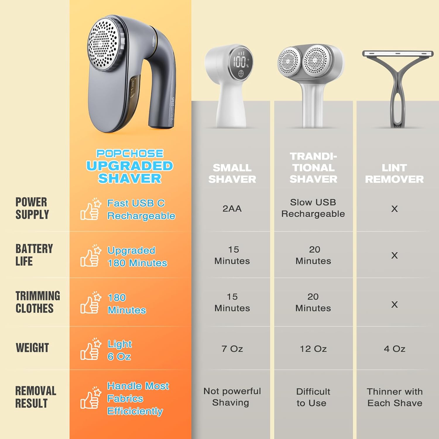 - Upgraded Long-Lasting Battery: A single full charge refresh your whole wardrobe. The 2000mAh fabric shaver for clothing powers through at least 3 hours of continuous use