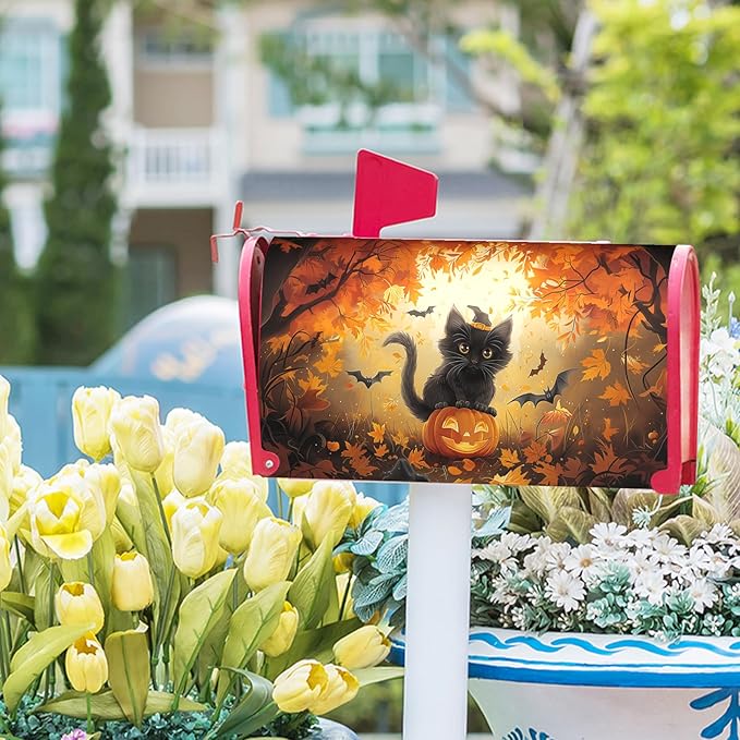 - 🎃Large Size: Designed to fit standard mailboxes, this Halloween cat cover measures 25.5x21 inches. The magnetic backing ensures a secure and easy installation, making it a perfect fit for most mailboxes without any hassle.