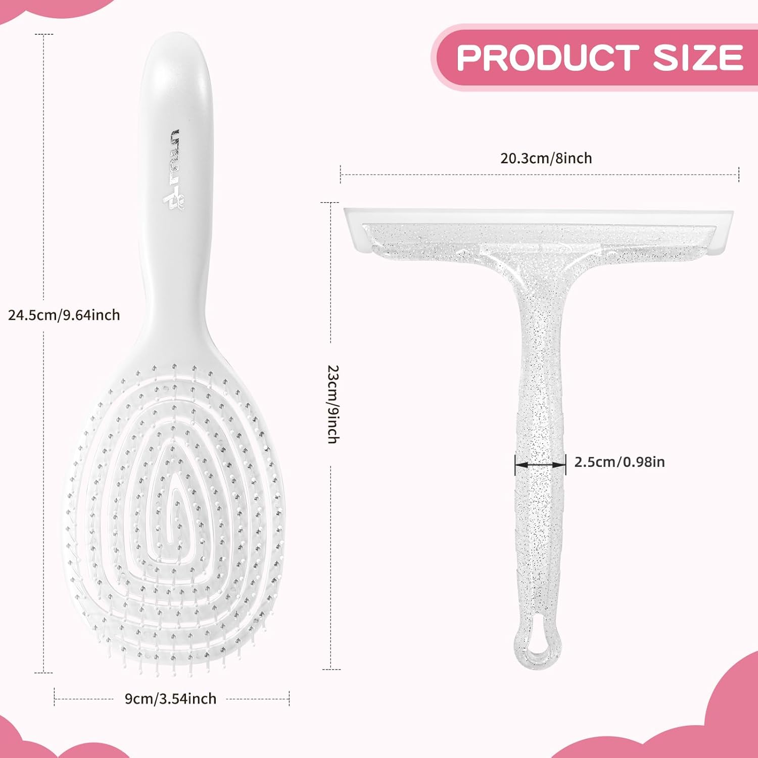 - 【STURDY AND DURABLE, MASSAGE HAIR COMB】:LTLUTU shower door squeegee is durable, it is made of 8 inches silicone blade, 9 inches long thickened clear ABS non-slip handle, silicone rubber strip installed 3 screws to make sure the silicone blade never slips off.The 8 inches silicone blade can be used to clean floors and glass quickly and easily, and it won't leave streaks, and it lasts longer than the rubber blades. The hairbrush is elegant pearlescent colour, the hairbrush is more flexible after hollowing out, the oil sprayed hairbrush feels good and durable, it can be used for both wet and dry and straight and curly hair, suitable for both men and women with different hair types!