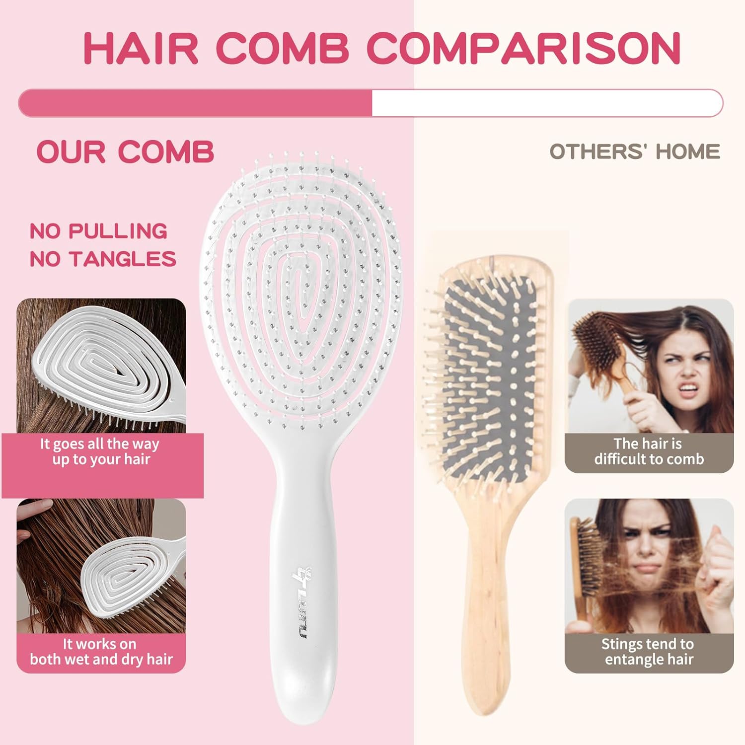 - 【Wet and dry dual-use pearlescent colour hair comb】:With a 9.5 inch long pearlescent colour wet and dry dual-use skeleton hair comb, the colour is elegant pearlescent, the handle adopts the ergonomic structure, easy to operate, the hair comb has a high degree of elasticity, can be used to massage the scalp and straighten hair curly hair, suitable for men and women of various hair types!