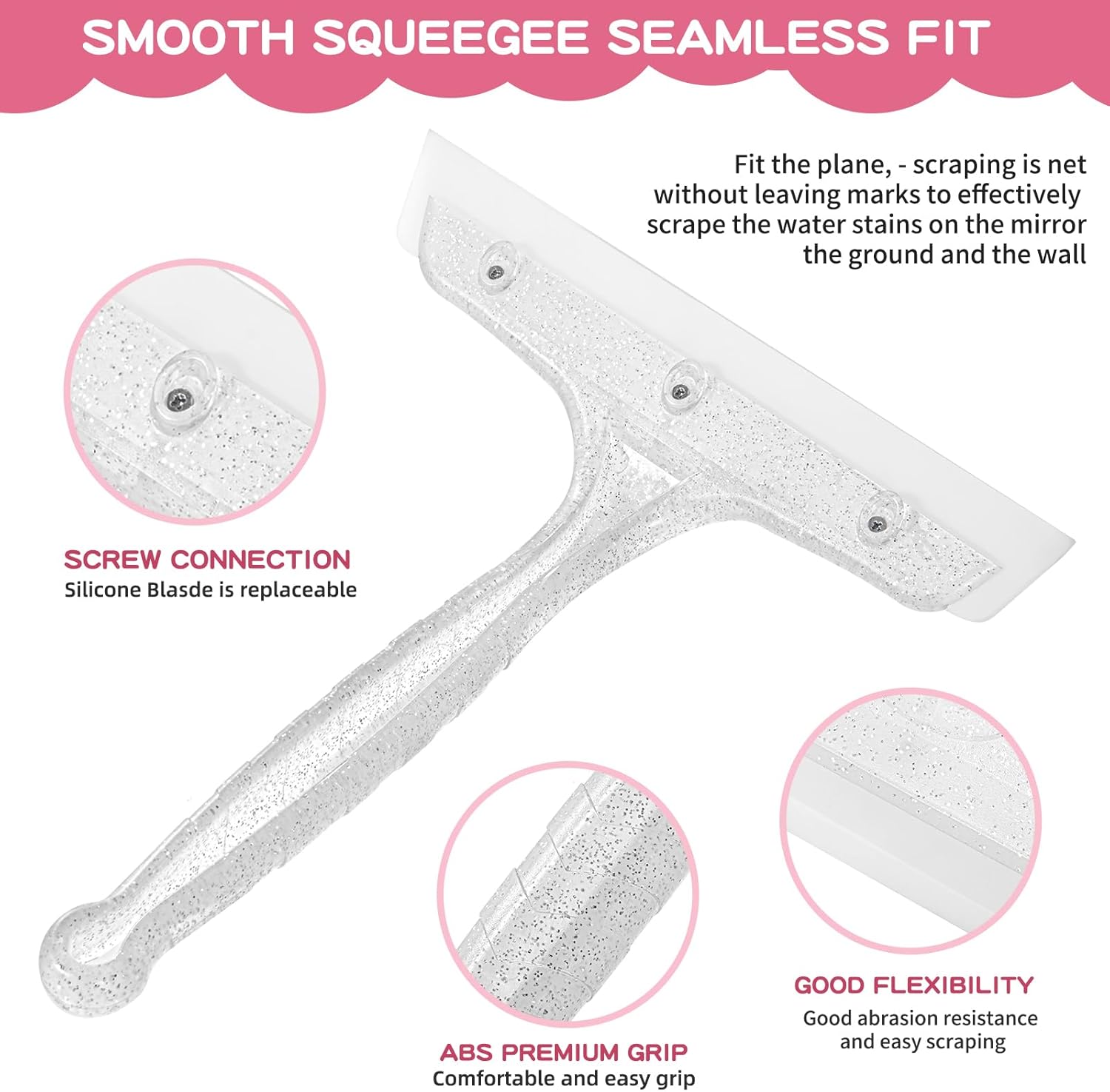 - 【Pearl colour silicone scraper】: LTLULU shower glass silicone squeegee, the use of new silicone material, more durable, squeegee handle using transparent ABS material, handle inside the pearl colour block, romantic dream, scraper positive and negative scraping does not hurt the glass marble, used for shower glass door scraper just wipe a few times, you can easily remove the water droplets, soap scum, as well as the shower glass door cleaner and other other build-up on the surface. Cleaning is done quickly and easily without leaving streaks and squeaks.