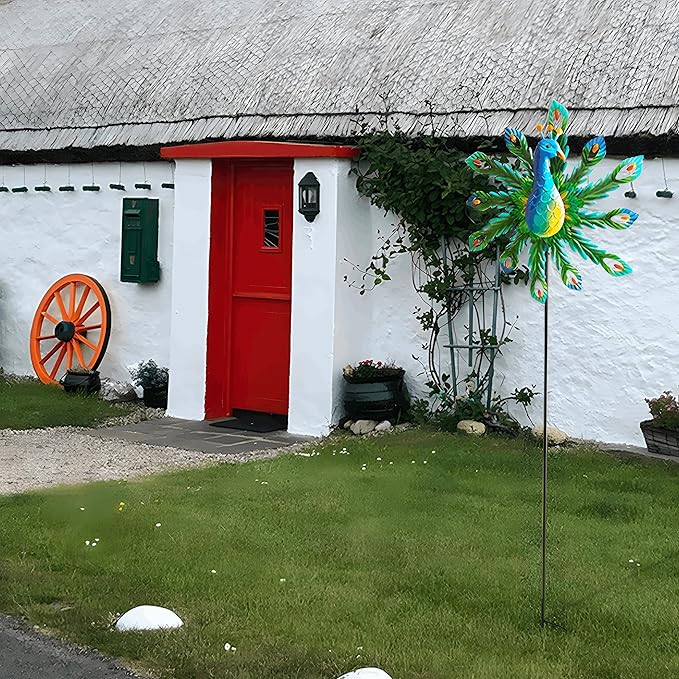 - [Peacock Wind Spinner]: The metal wind spinner is made of double peacocks and delicate peacock feathers, and is coated with anti-rust coating, which is more durable. The vivid peacock adds vitality to your garden.
