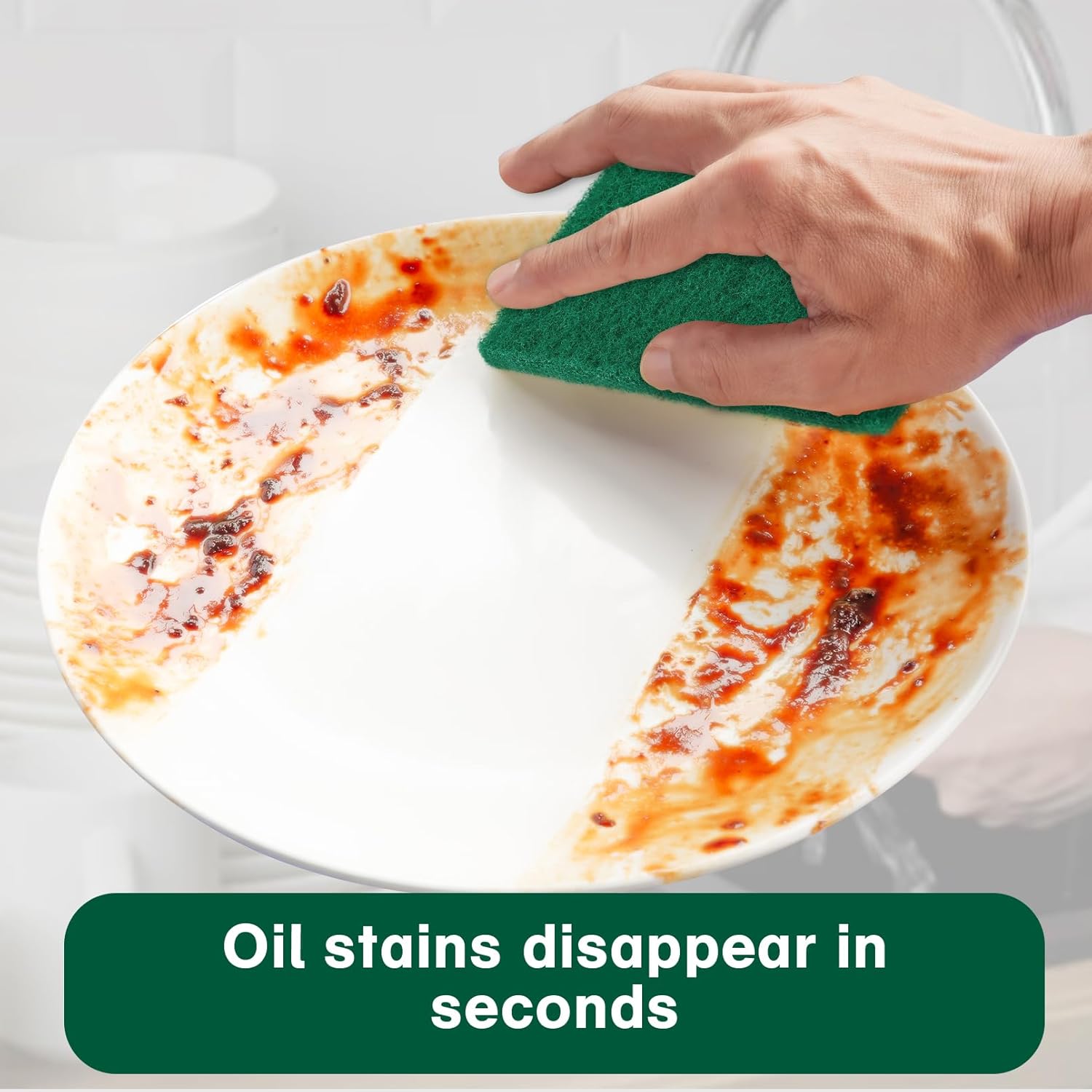 - 100Pcs Green Scouring Pad: Each set includes 100 pcs 3x4 inch heavy duty scour pads with extra strength scrubbing texture. These scrub pads will meet a variety of household cleaning needs.