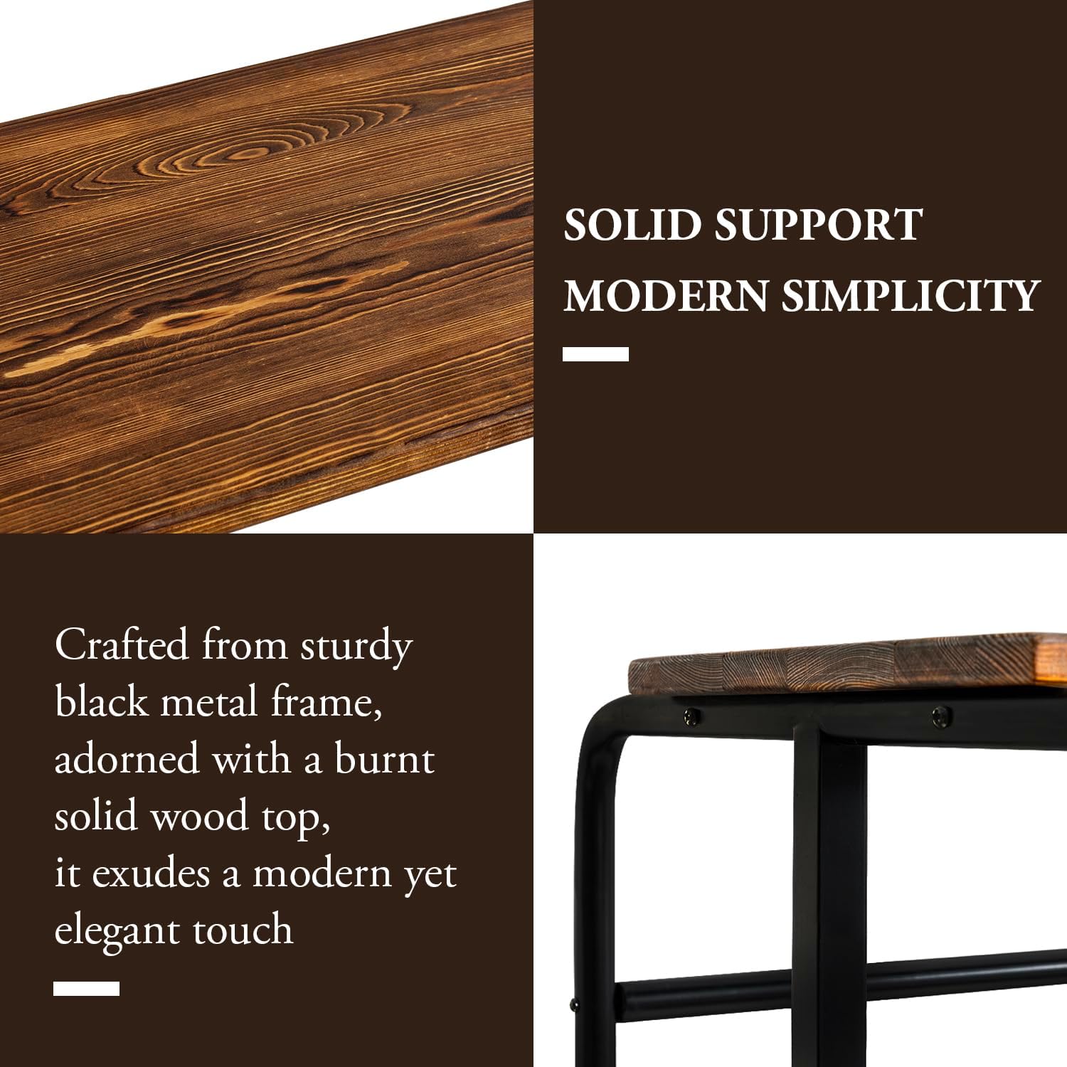 - The freestanding garment rack is built with heavy-duty black metal and solid burnt wood, ensuring robust support for a large number of clothes. Its sturdy frame provides long-lasting durability, making it ideal for both commercial and home use
