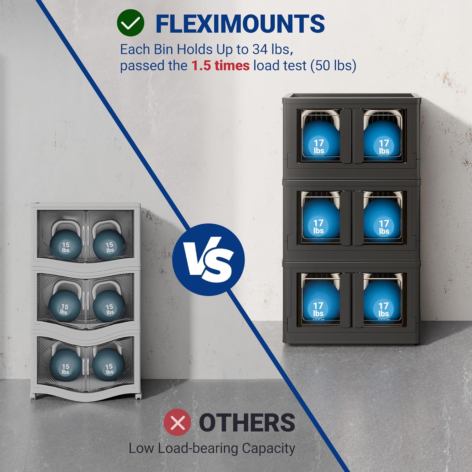 FLEXIMOUNTS 150 QT Stackable Storage Bins With Lids, Collapsible Plastic Storage Bins, Closet Organizers and Storage Containers with Doors and Built-in Wheels For Home, 4 Pack Cubes, Black