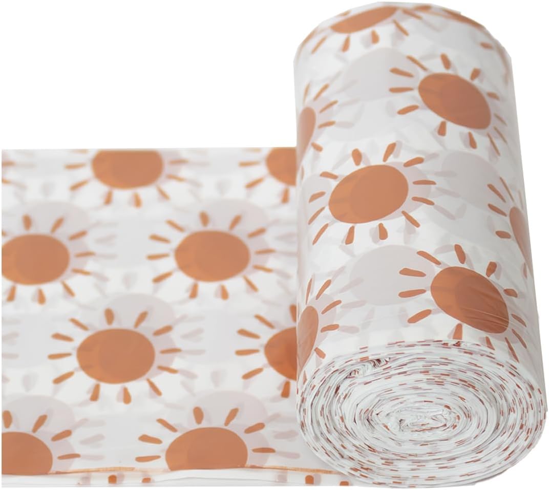 - 𝐒𝐓𝐘𝐋𝐈𝐒𝐇 & 𝐏𝐑𝐀𝐂𝐓𝐈𝐂𝐀𝐋 𝐃𝐄𝐒𝐈𝐆𝐍: **Decorative trash Liners ONLY, the trash bin is NOT included** Our sunshine pattern bathroom garbage bags not only provide an elegant and modern touch to your home but also serve a functional purpose. These bathroom trash bags effortlessly combine a minimalist design with versatile use, making them great for any room in your home.