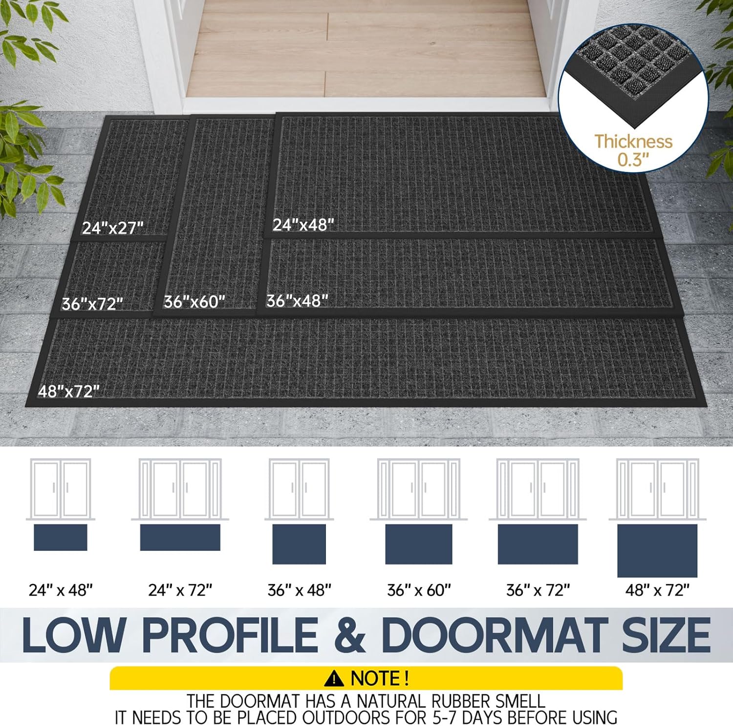 - LARGE DOORMAT VERSATILITY: Heavy duty doormats are perfect for high traffic areas such as entrances, outdoor patios, garages, gardens, laundries, or any outdoor space, and can also be used as a commercial doormat to keep floors clean in public places