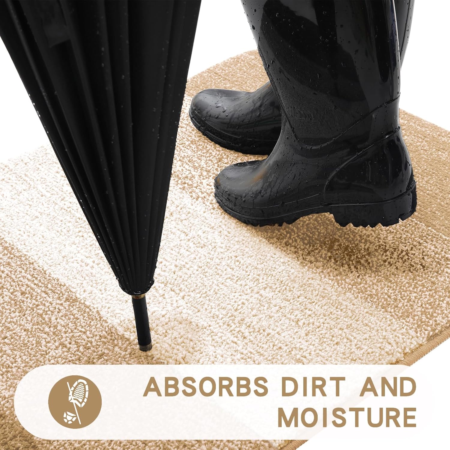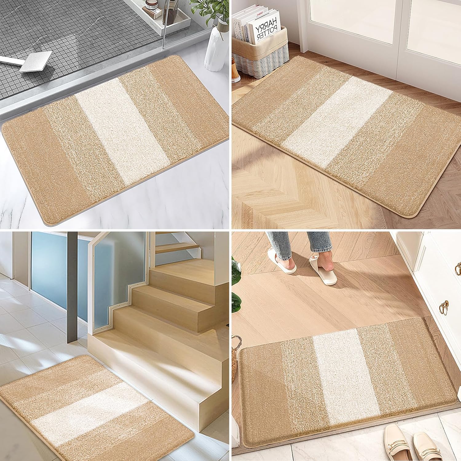Kitinjoy Indoor Outdoor Door Mat, 30x17 Non-Slip Absorbent Dirt Trapper, Low-Profile Washable Inside Entrance Front Floor Mat, Sturdy Soft Entry Doormats for Entryway, Beige