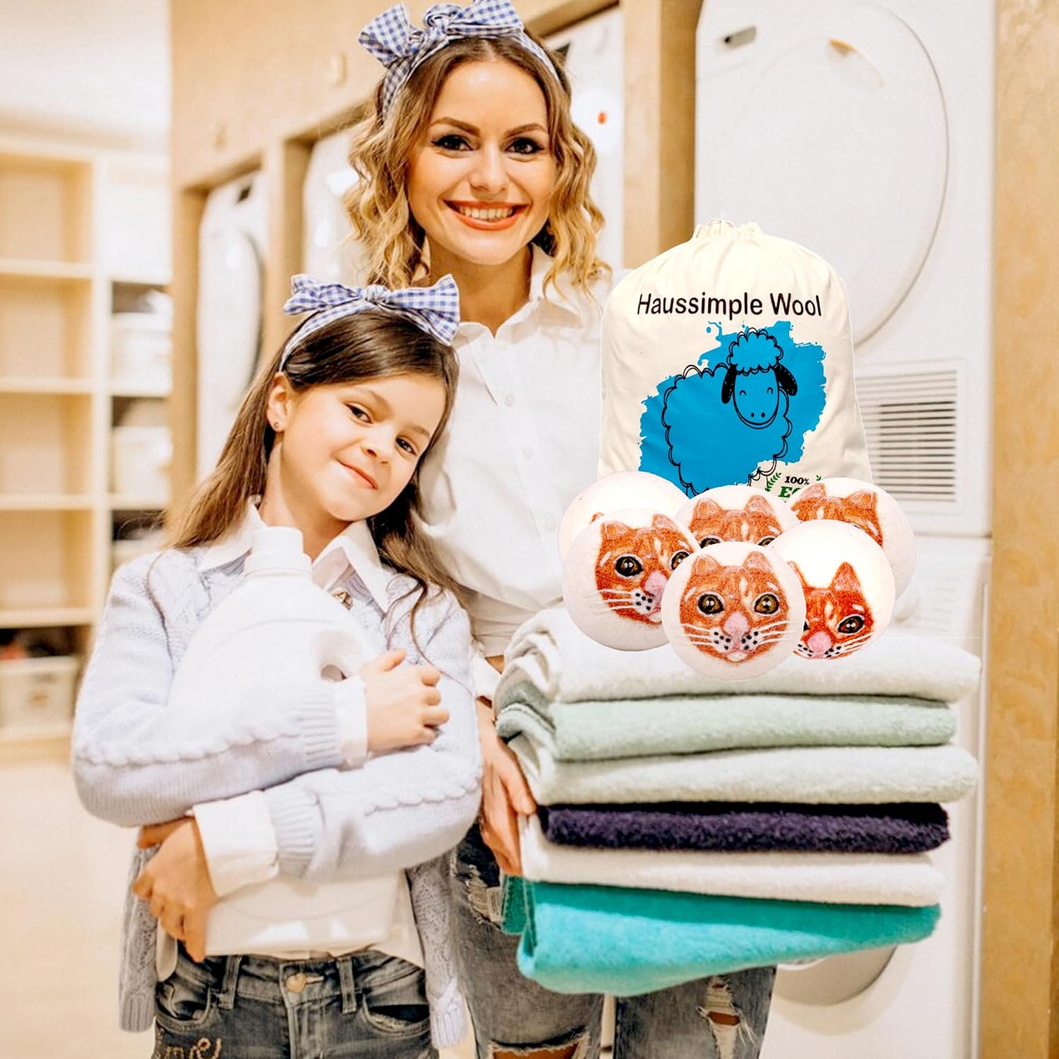 Wool Dryer Balls Organic Felt 6 Pack Laundry Fabric Softener, Extra Large Reusable Handmade Natural Sheep Wool Lint Wrinkle Free Anti Static Baby Safe (Orange Cat)