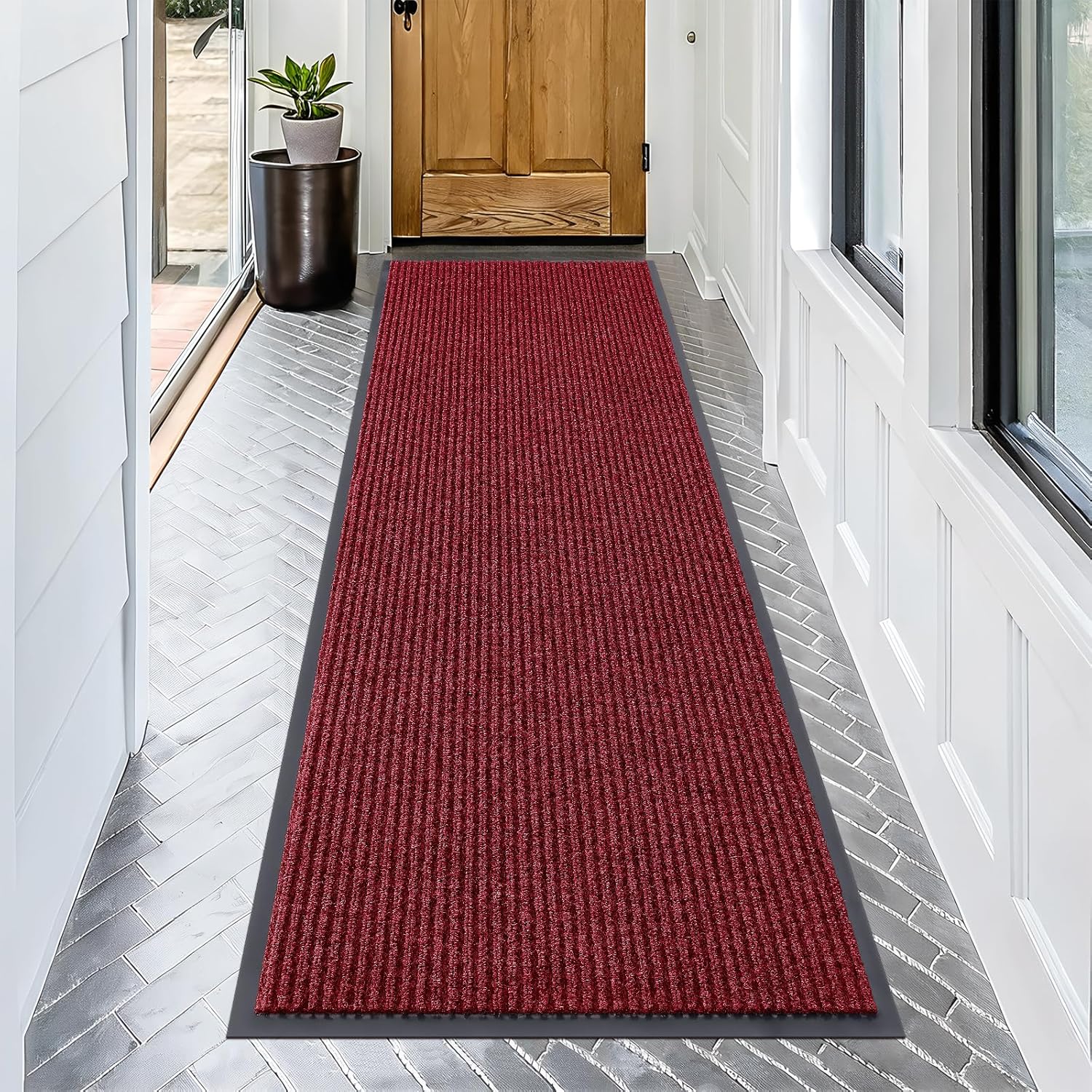 OLANLY Front Door Mat Indoor Outdoor Entrance, Waterproof Heavy Duty Doormat, Fade Resistant, Low Profile, Easy Clean Patio Porch Welcome Floor Mats for Entry, 71x23, Wine Red